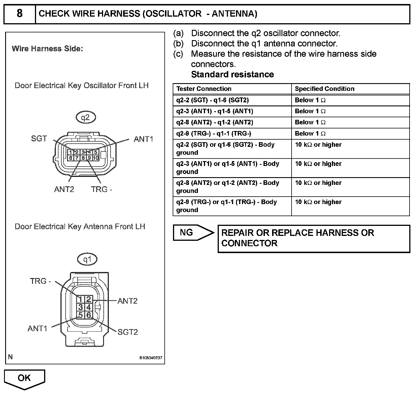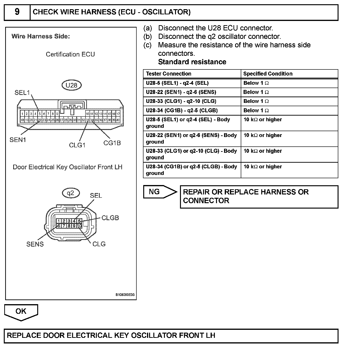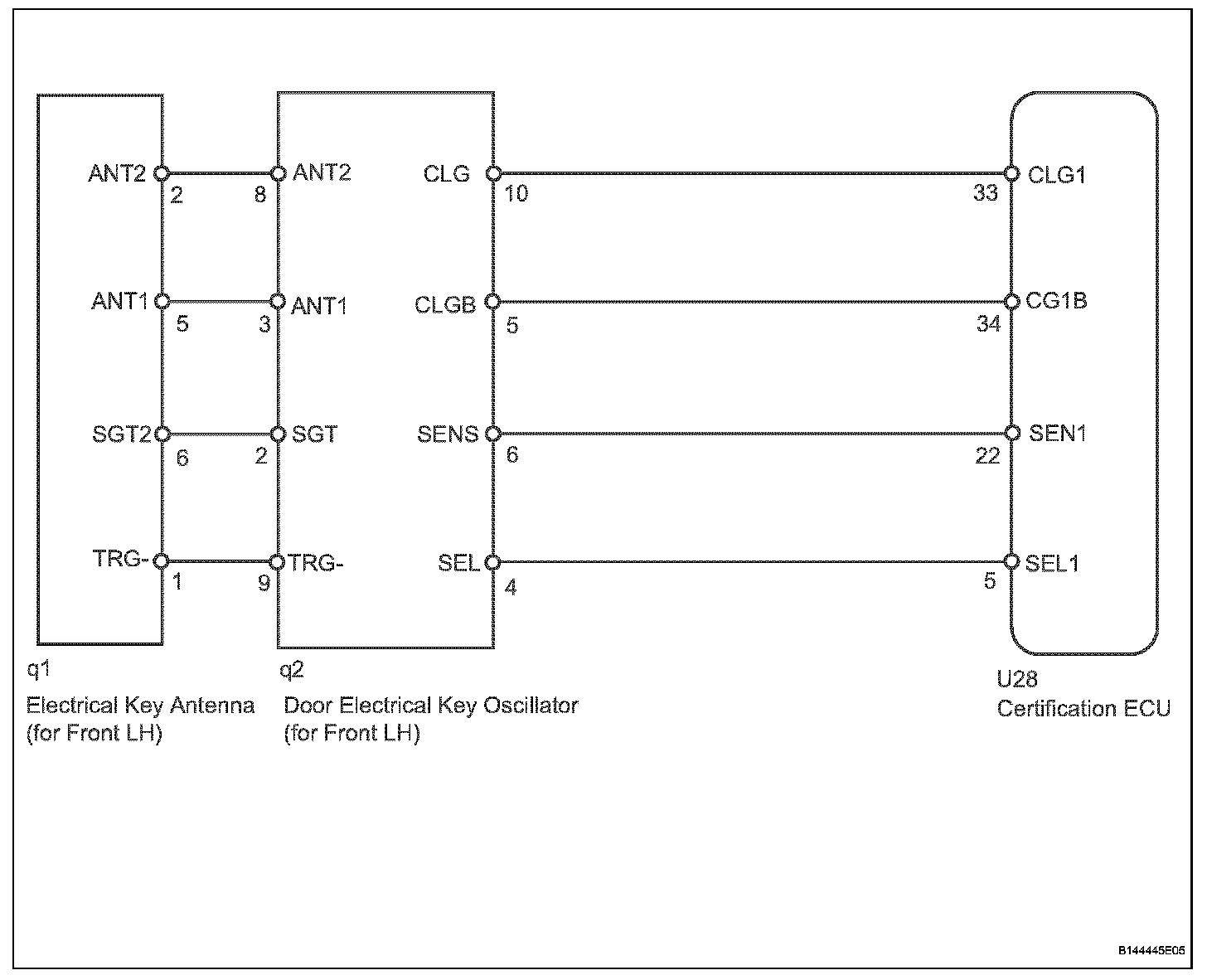 When an ID code from the door electrical key oscillator front LH matches an ID code from the key, the certification ECU outputs a SEL signal (Lo when output) to the door electrical key oscillator front LH, activates the touch sensor inside the outside door handle, and enters unlock standby mode. When the touch sensor is touched, the door electrical key oscillator front LH sends a SENS signal (Lo when output) to the certification ECU and the certification ECU sends an unlock signal to the driver side door lock.