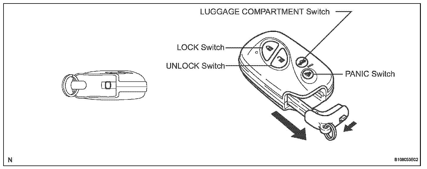 Push the LOCK/UNLOCK/PANIC/LUGGAGE COMPARTMENT switch on the key to operate each function.