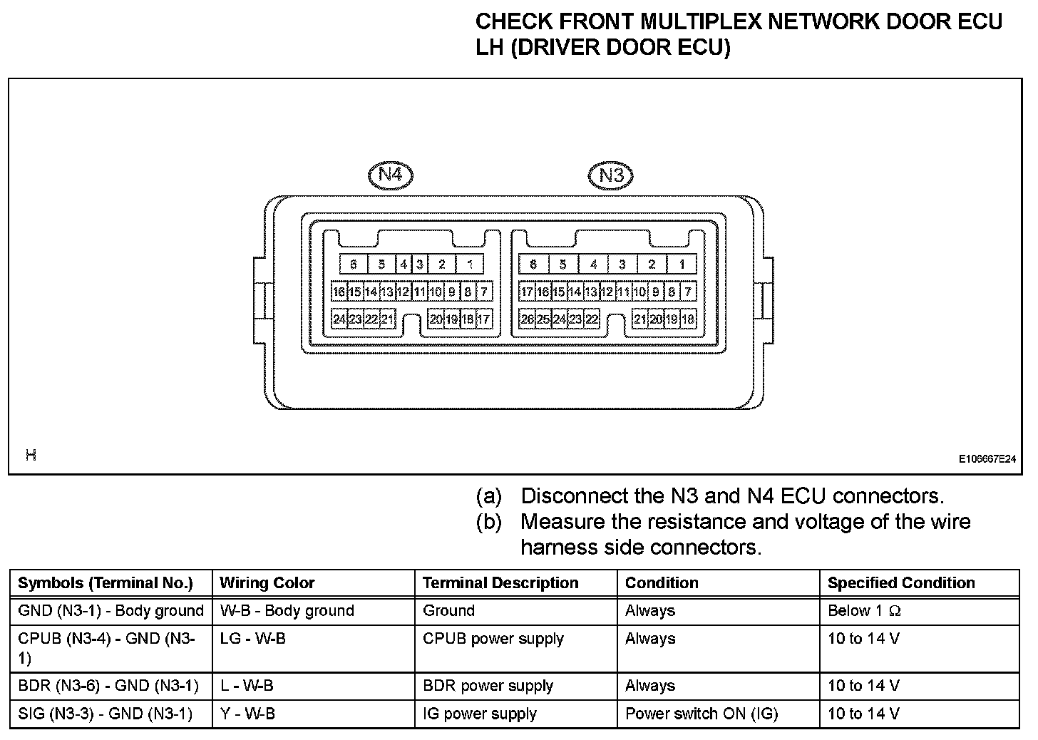 Terminals Of Control Module/Pinouts - Check Front Multiplex Network Door ECU LH (Driver Door ECU) (Part 1):