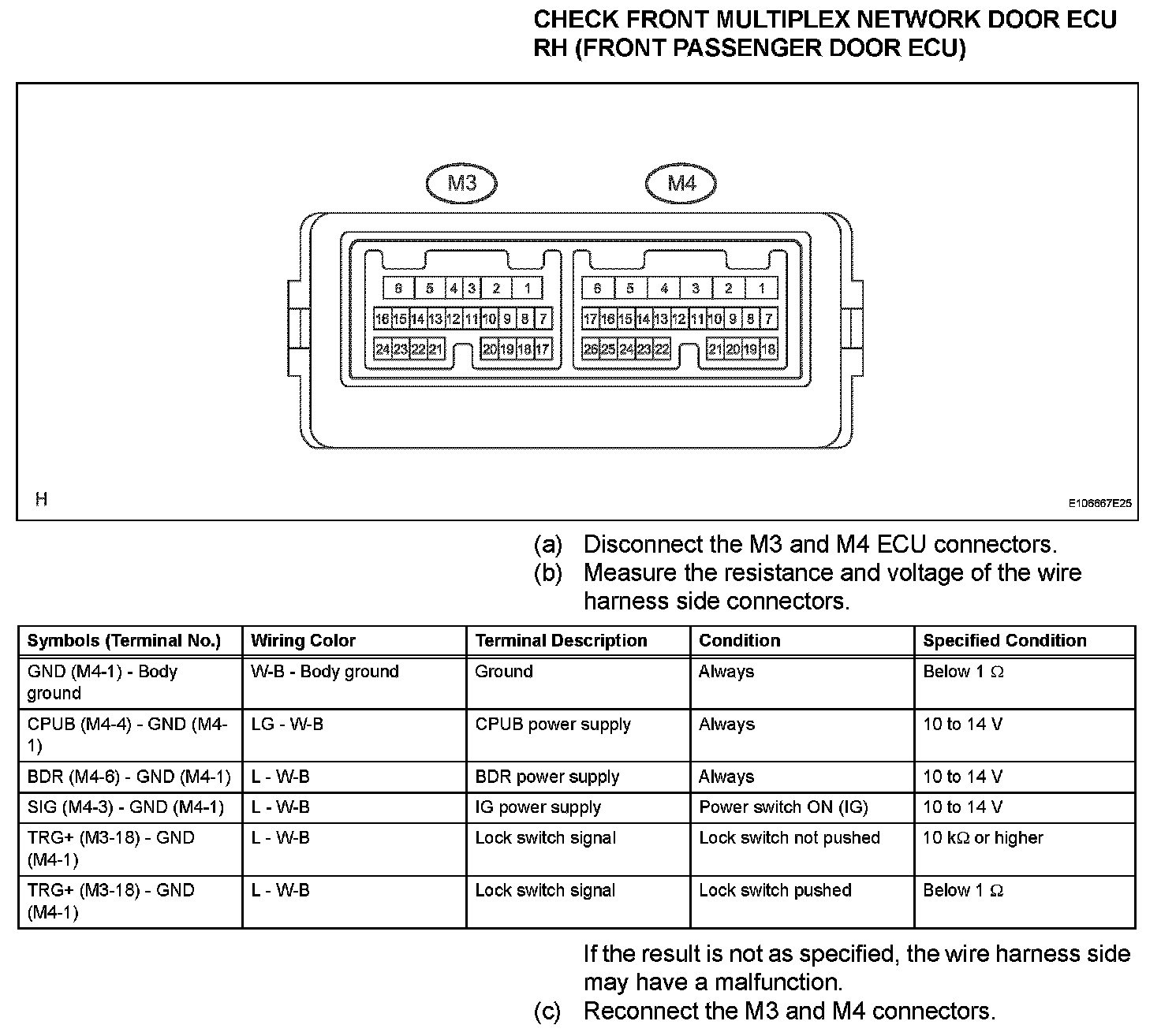 Terminals Of Control Module/Pinouts - Check Front Multiplex Network Door ECU RH (Front Passenger Door ECU) (Part 2):