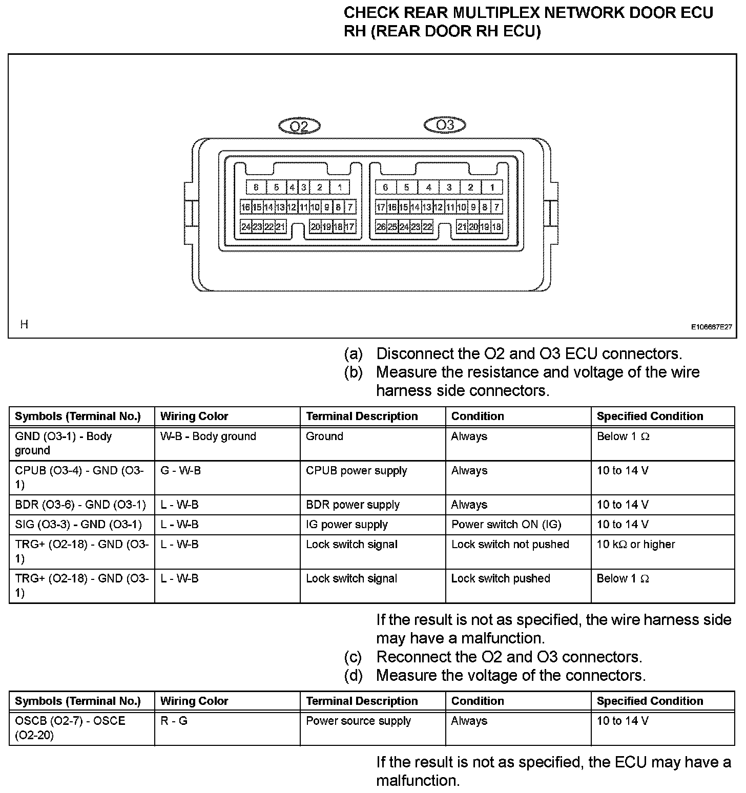 Terminals Of Control Module/Pinouts - Check Rear Multiplex Network Door ECU RH (Rear Door RH ECU):