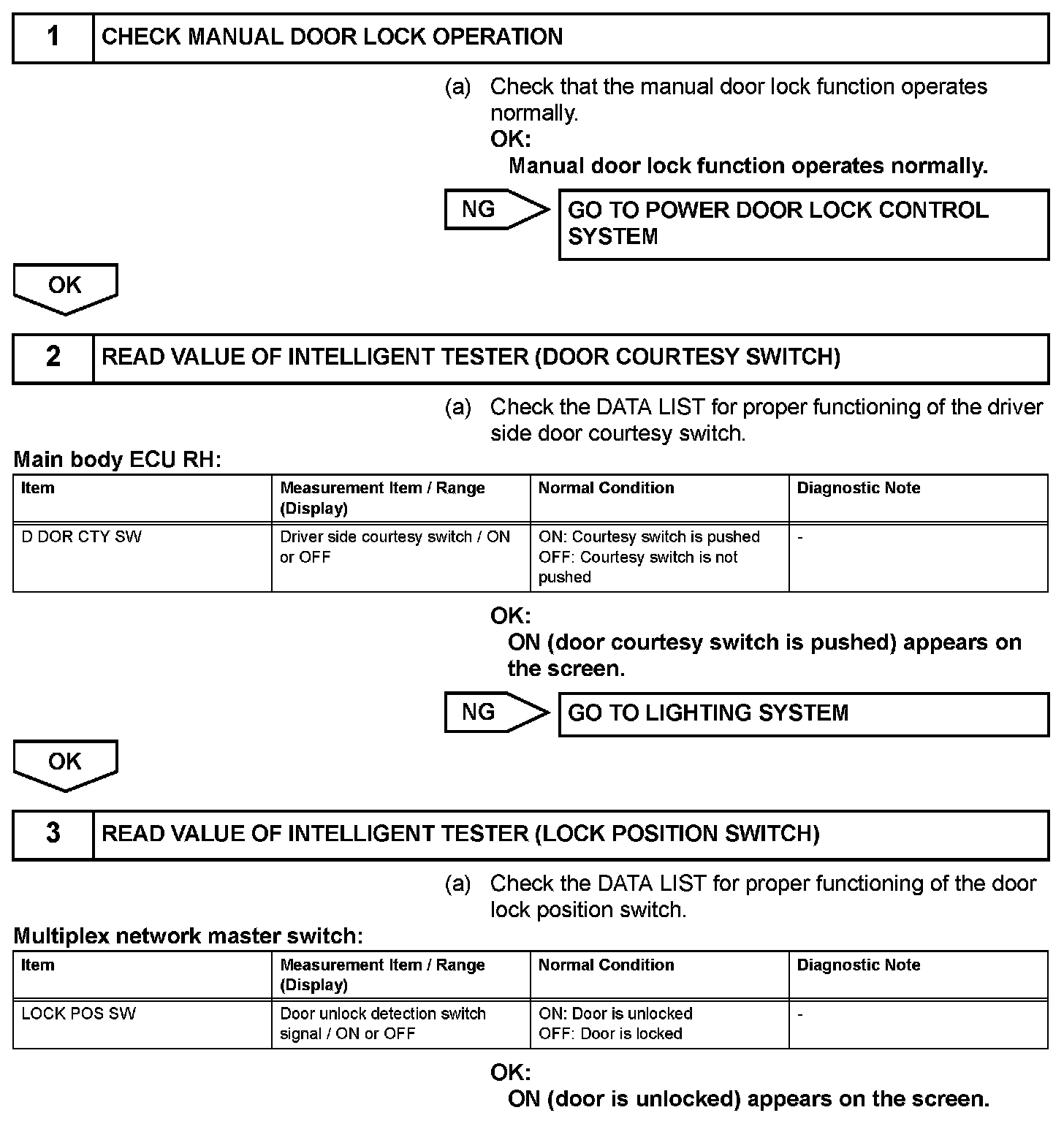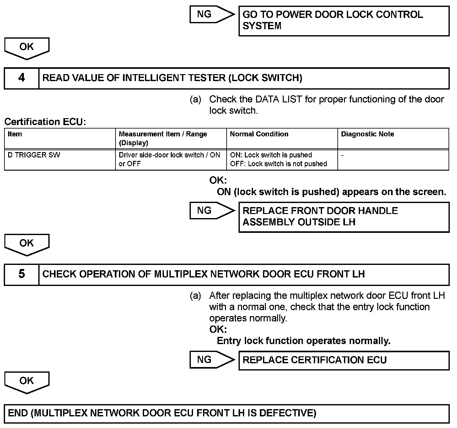 Driver Side Door Entry Lock Function does not Operate