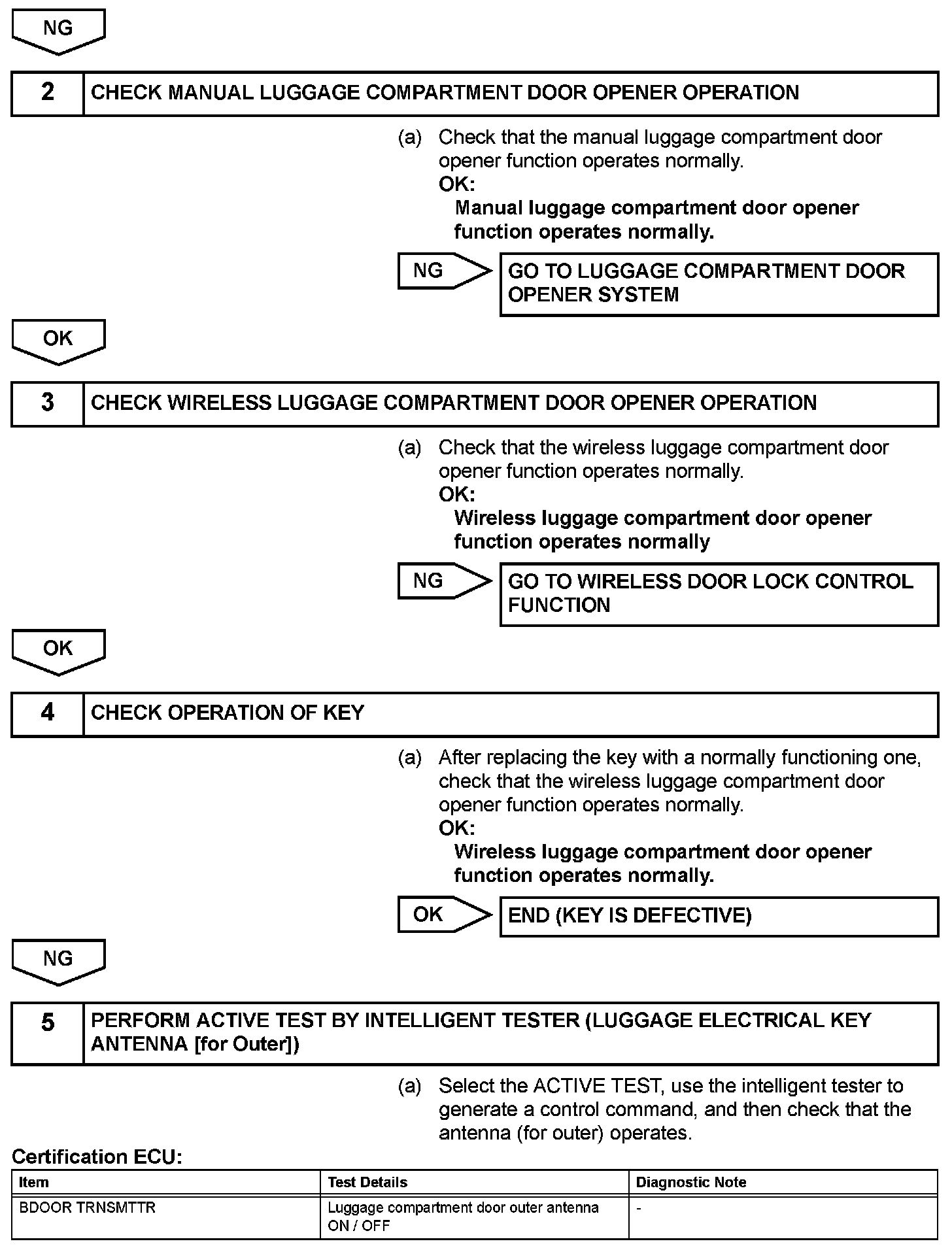 Luggage Compartment Door Entry Unlock Function Does Not Operate When Key Is Outside Luggage Compartment