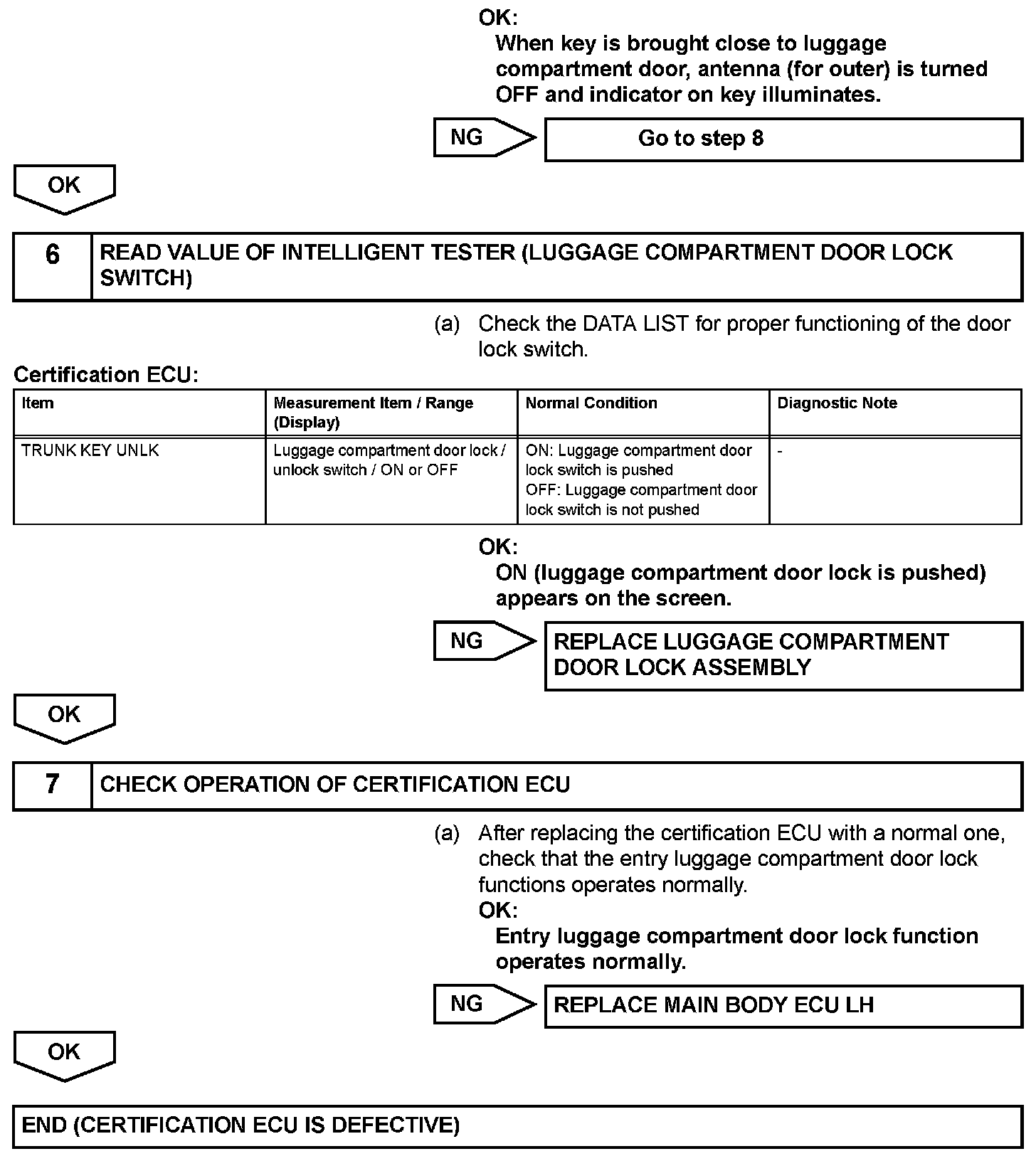 Luggage Compartment Door Entry Unlock Function does not Operate when Key is Outside Luggage CompartmentDESCRIPTION