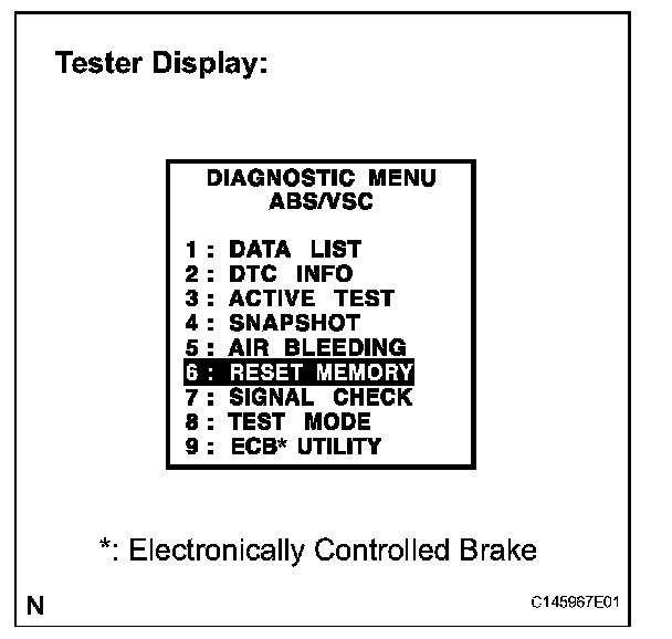 d. Perform the RESET MEMORY function under the ABS/VSC MENU.