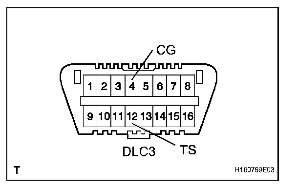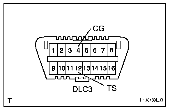 b. Using SST, connect terminals 12 (TS) and 4 (CG) of the DLC3.