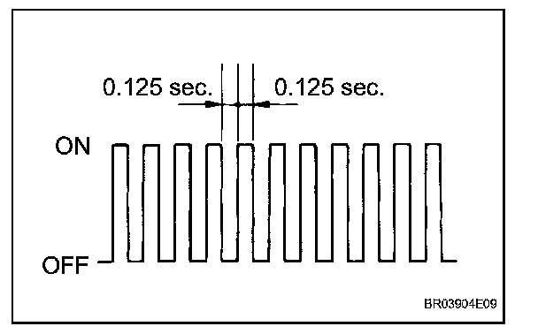 f. Check that the interval between blinks of the brake control warning light changes from 1 second to 0.25 seconds.