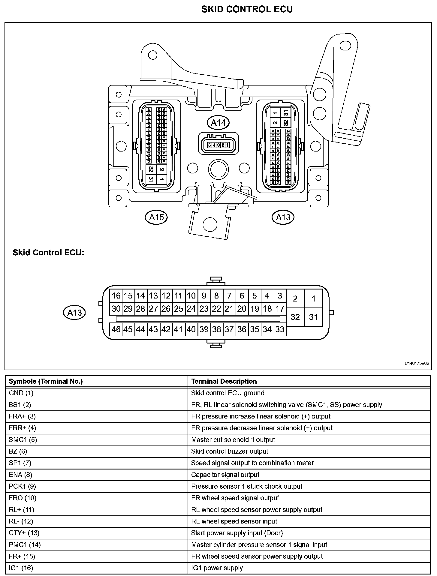 Terminals Of Control Module/Pinouts-Skid Control ECU (Part 1):