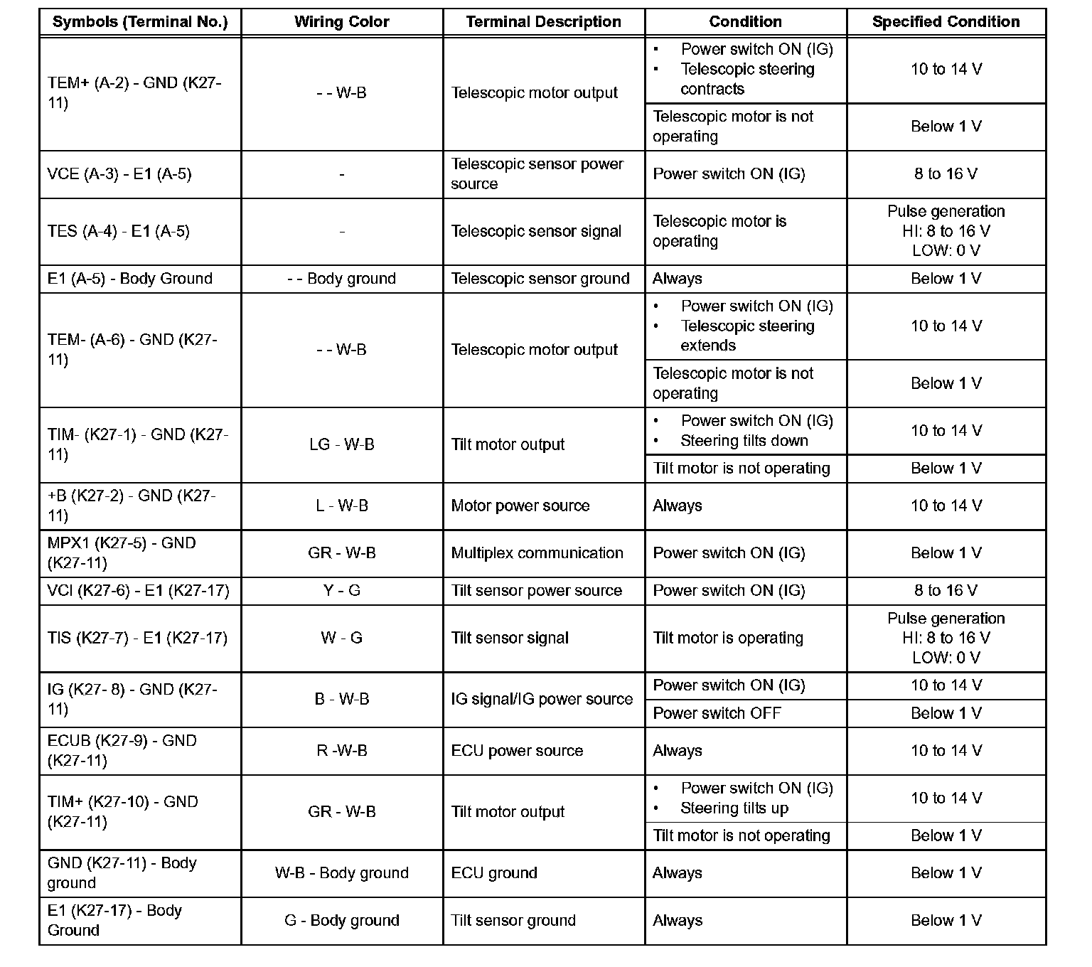 CHECK MULTIPLEX TILT AND TELESCOPIC ECU