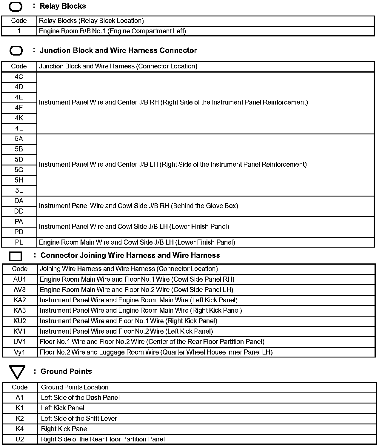 Locations: The locations of components, connectors, ground points, and splices referred to within these diagrams can be found at Vehicle Locations. Locations
