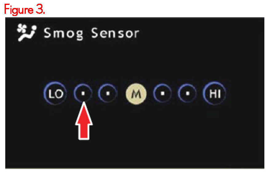 Press and hold the Outside Air / Recirculated Mode button on the HVAC unit until the smog sensor screen appears.