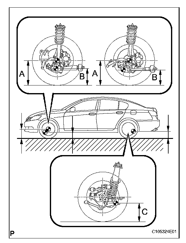 Before inspecting the wheel alignment, adjust the vehicle height to the specified value.
