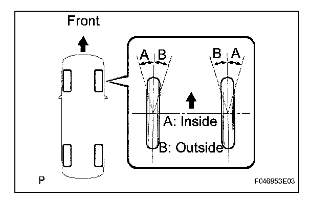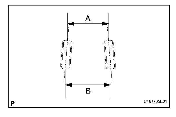 If the right and left inside wheel angles differ from the specified range, check the right and left rack end lengths.