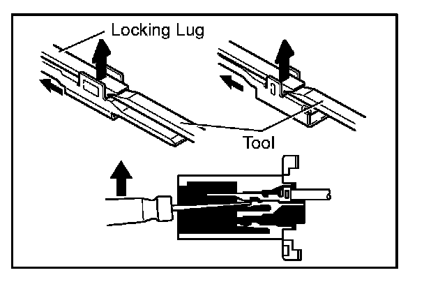 a. Locking device must be disengaged before the terminal locking clip can be released and the terminal removed from the connector.