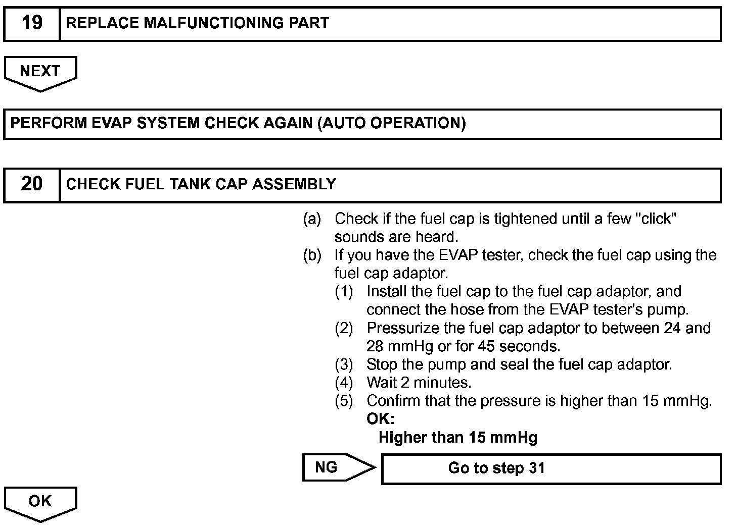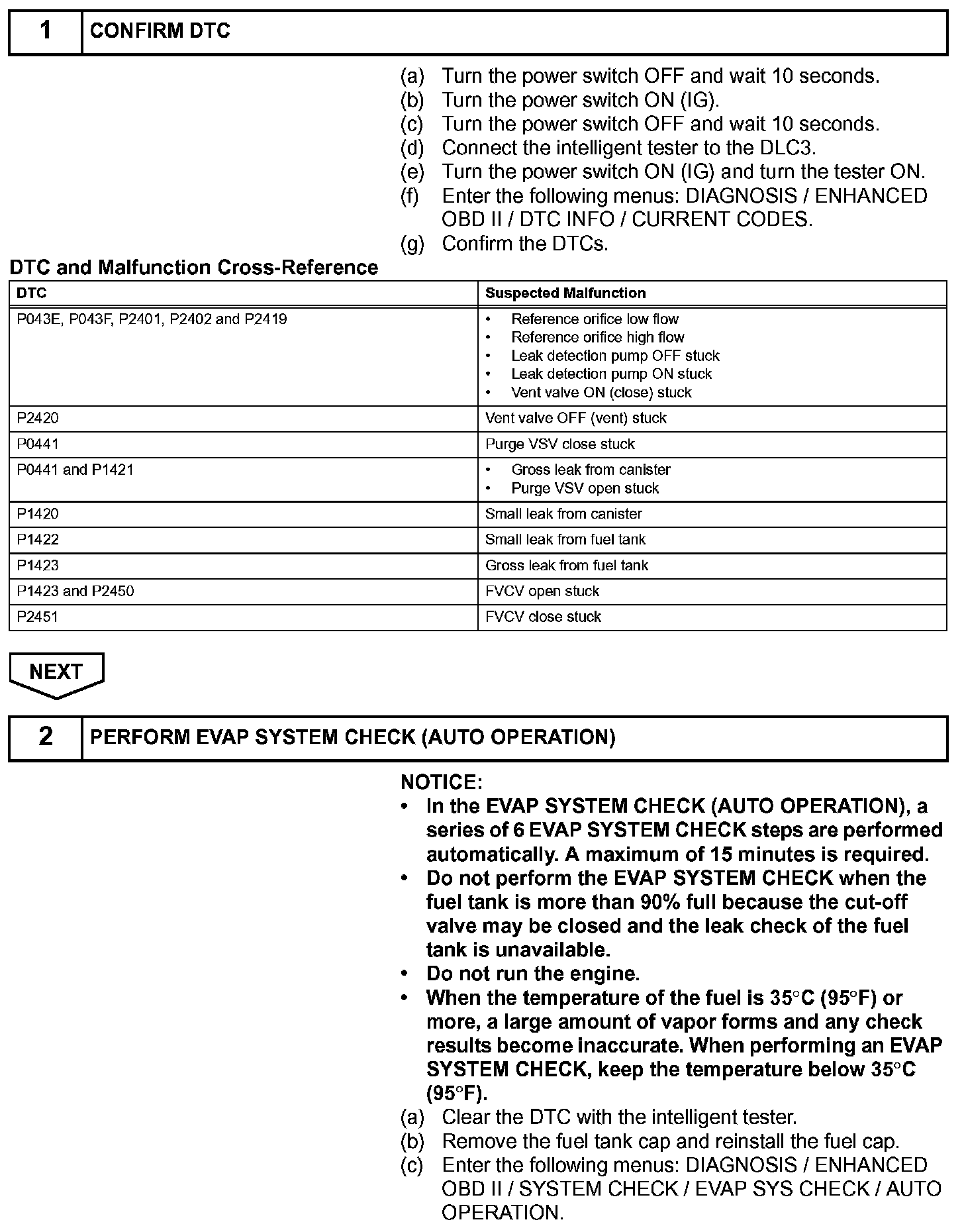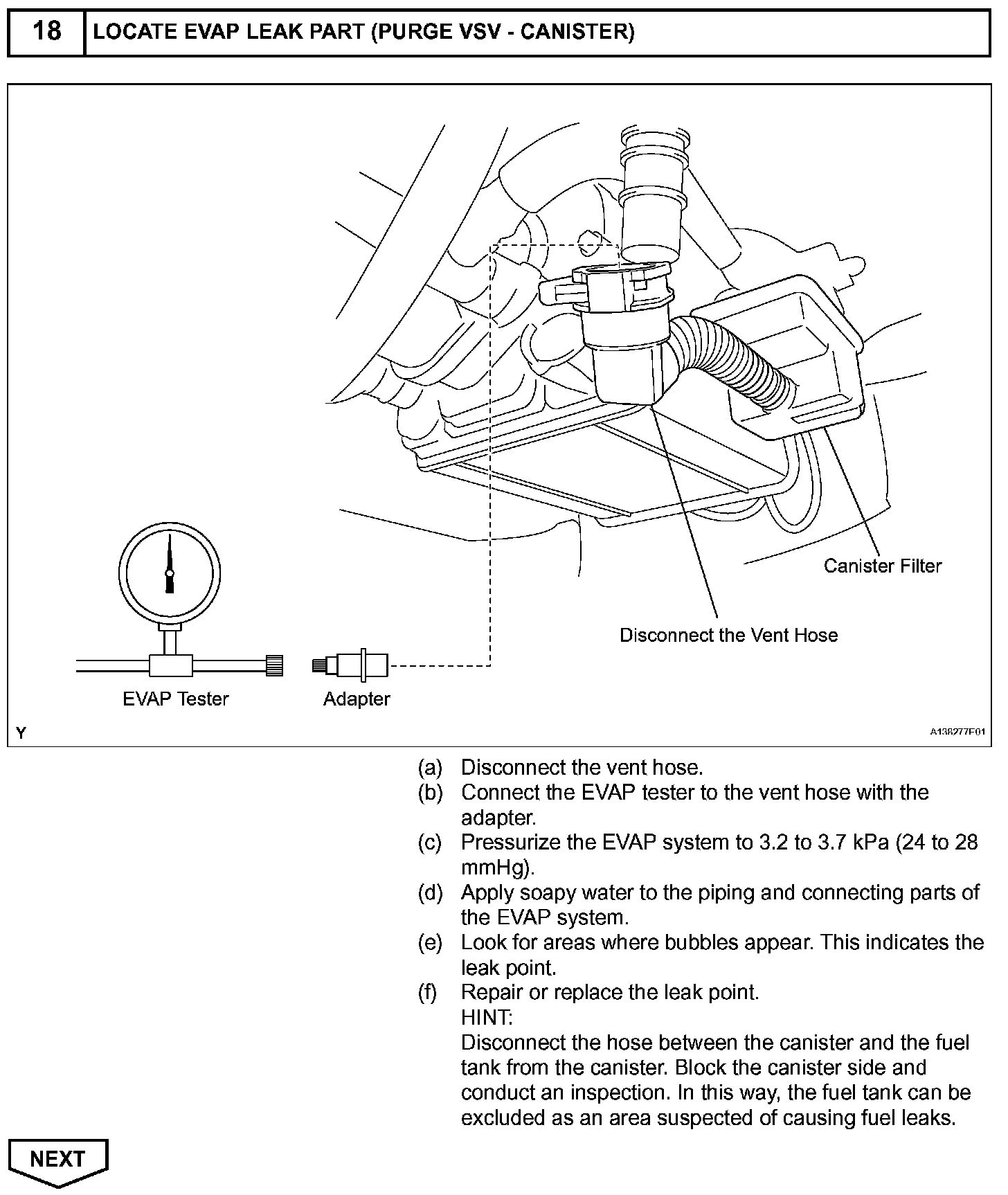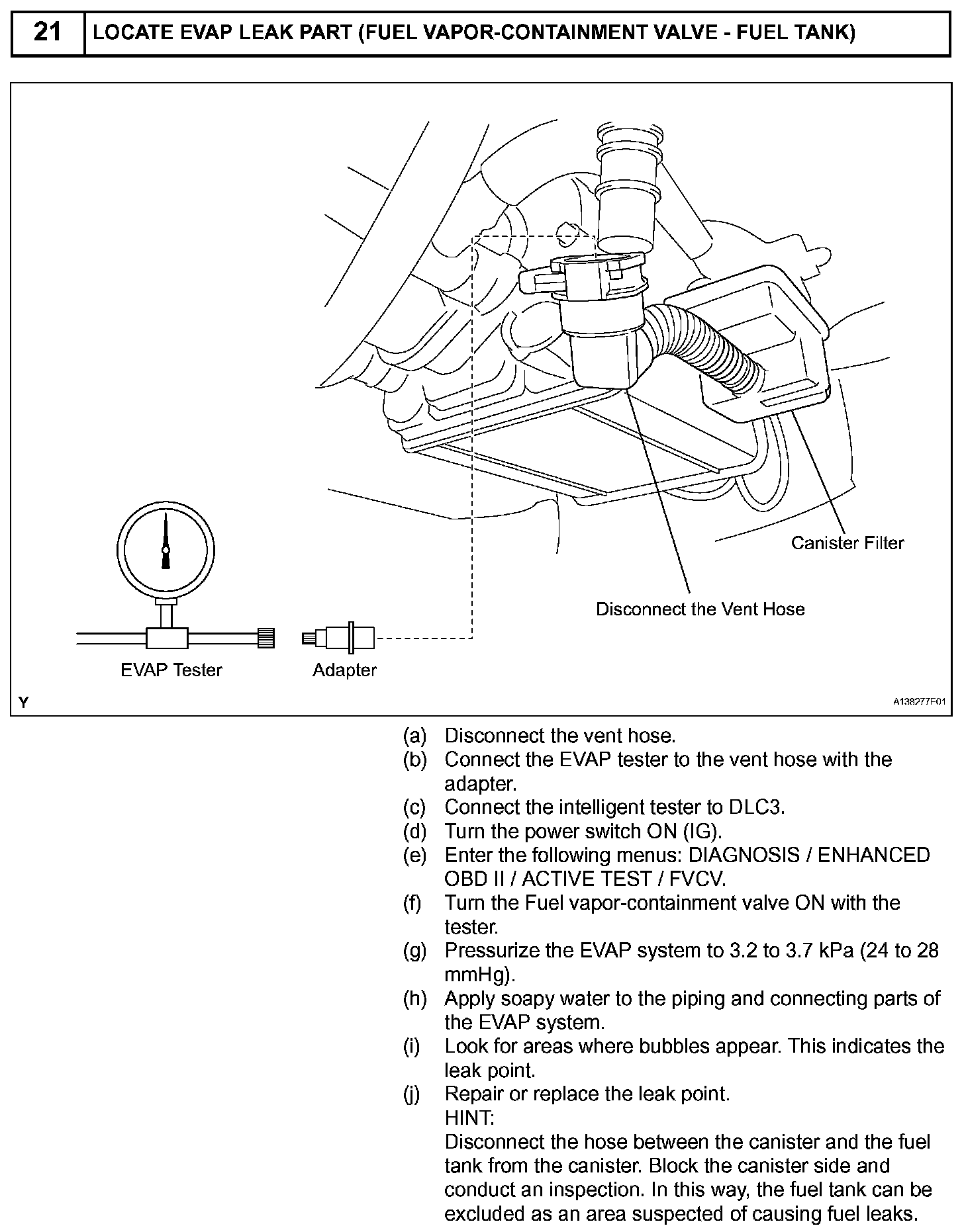 This monitoring system checks for canister pump module malfunctions and leaks from the EVAP and closed tank systems. Be sure to leave the vehicle for at least 5 hours to sufficiently cool the fuel and stabilize fuel tank pressure. This makes EVAP system monitoring more accurate.