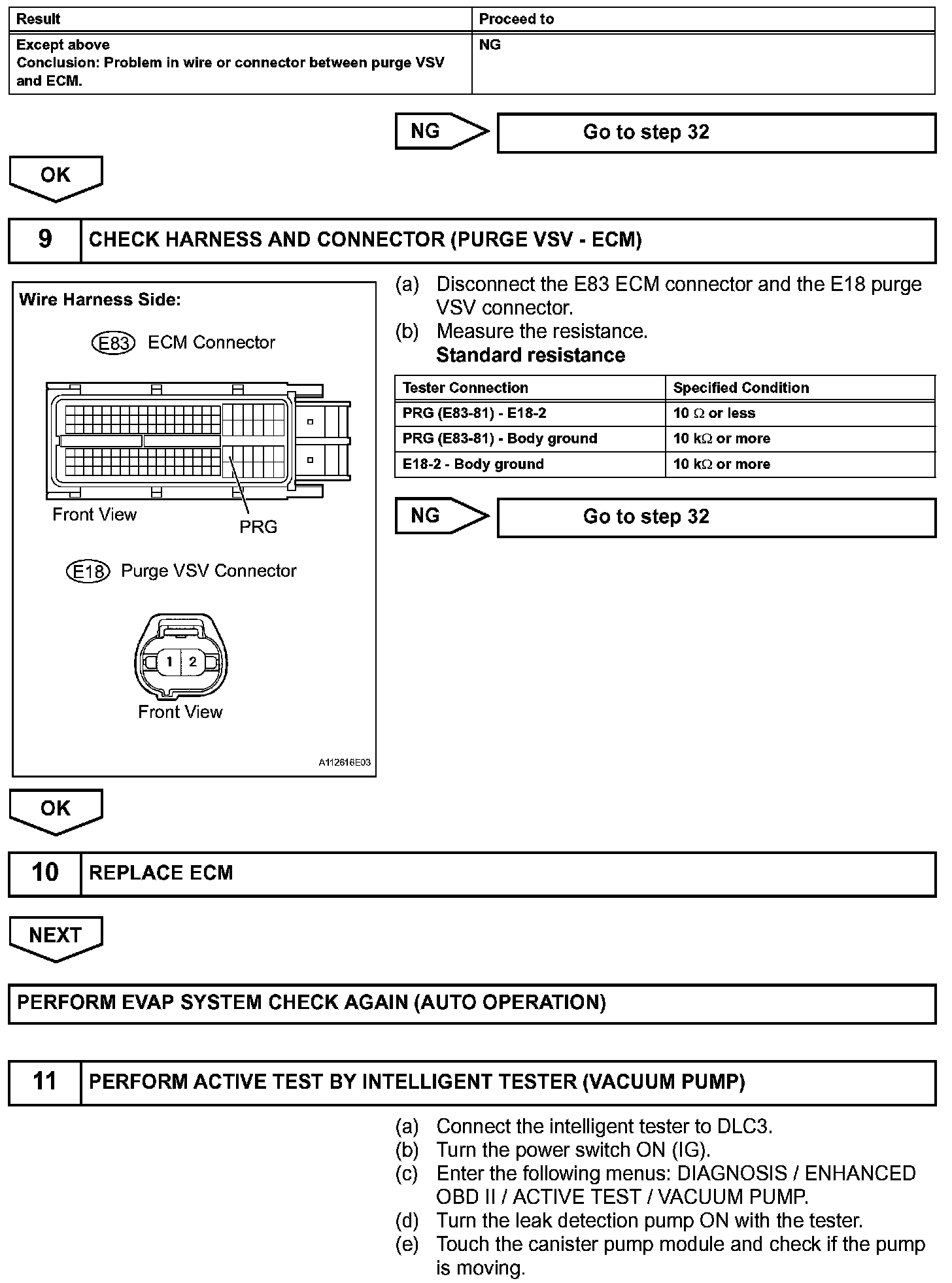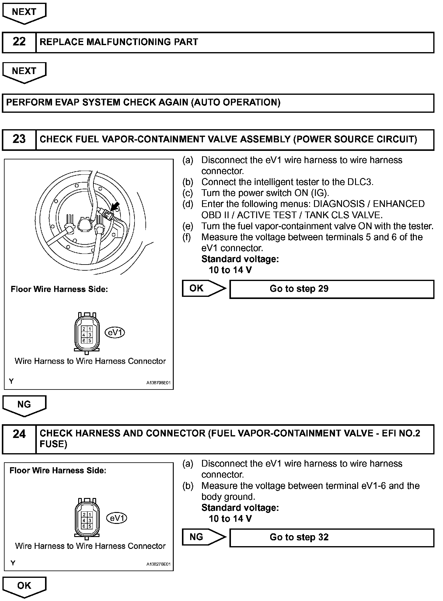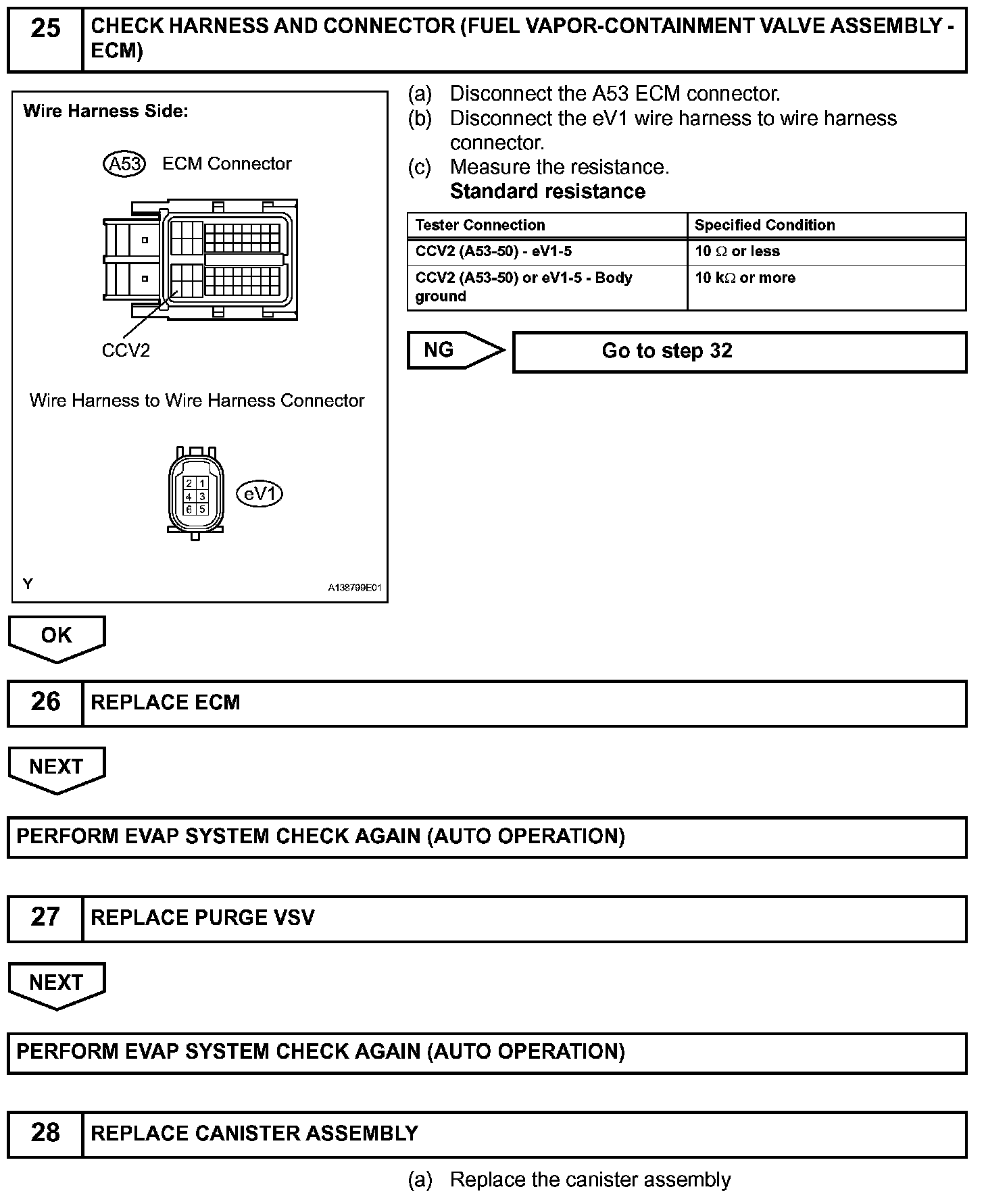 While the engine is running, if a predetermined condition (closed loop, etc.) is met, the purge VSV is opened by the ECM and stored fuel vapors in the canister are purged to the intake manifold. The ECM will change the duty cycle ratio of the purge VSV to control purge flow volume.