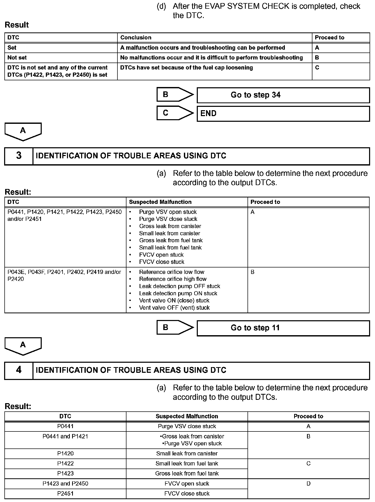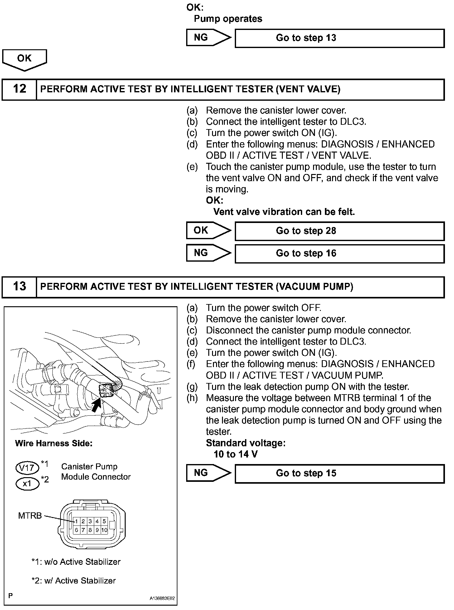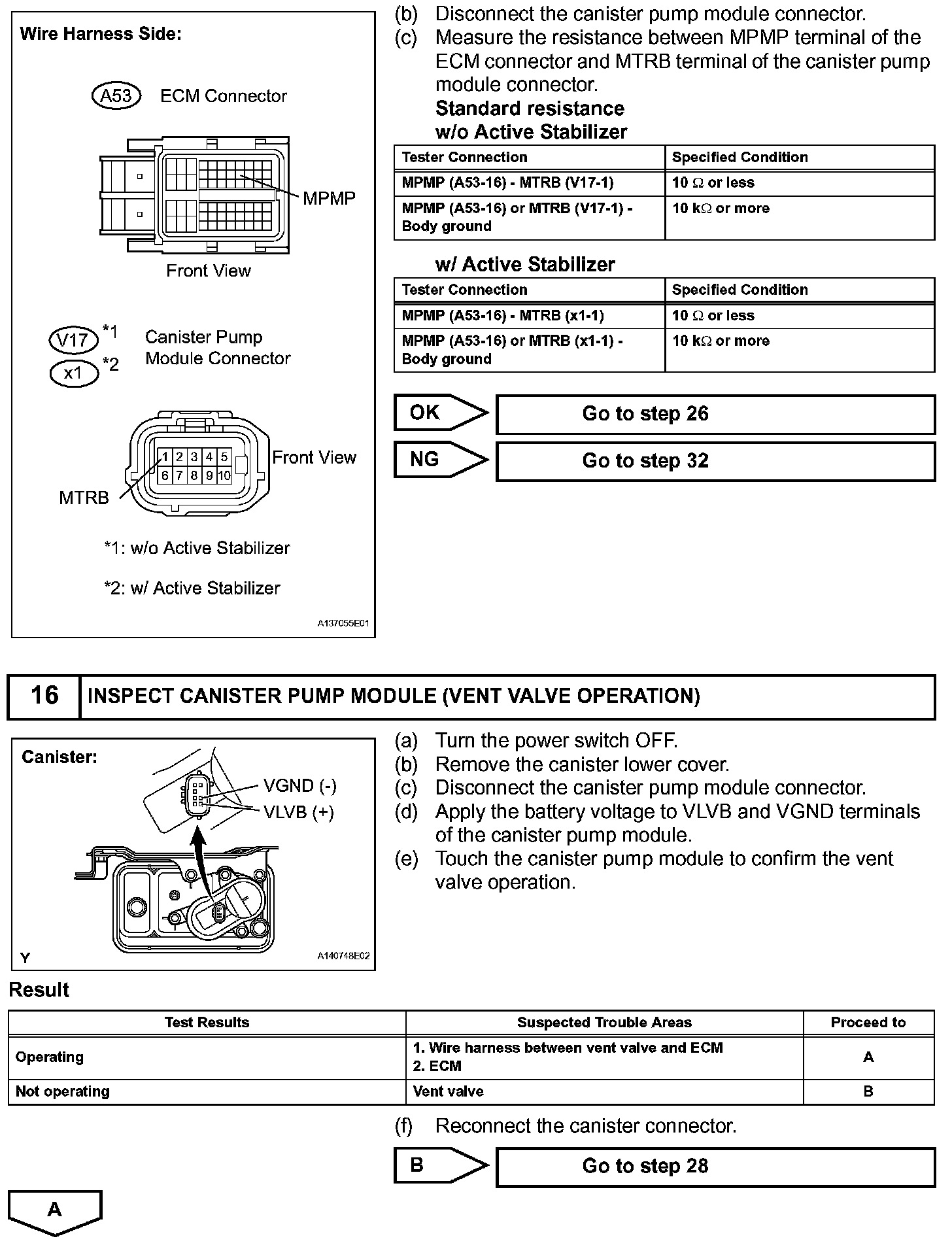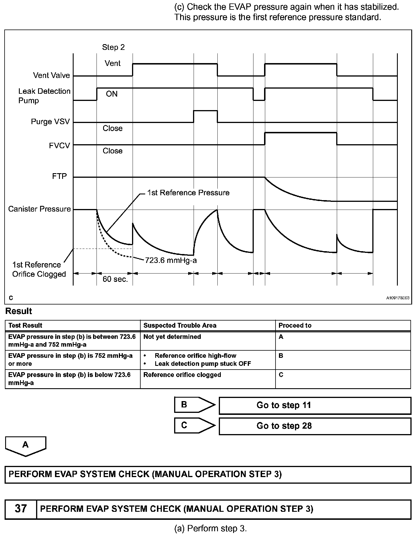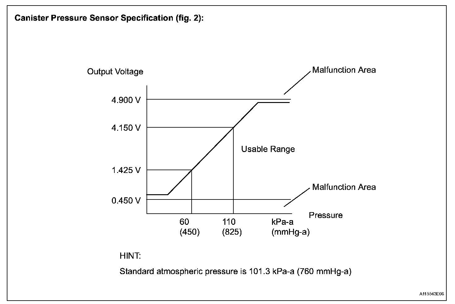 1. If the fuel tank pressure is higher or lower than the atmospheric pressure, the system determines that there are no leaks in the closed tank system and the system will check for leaks from the piping and canister between the purge VSV and canister pump module. (Method A)