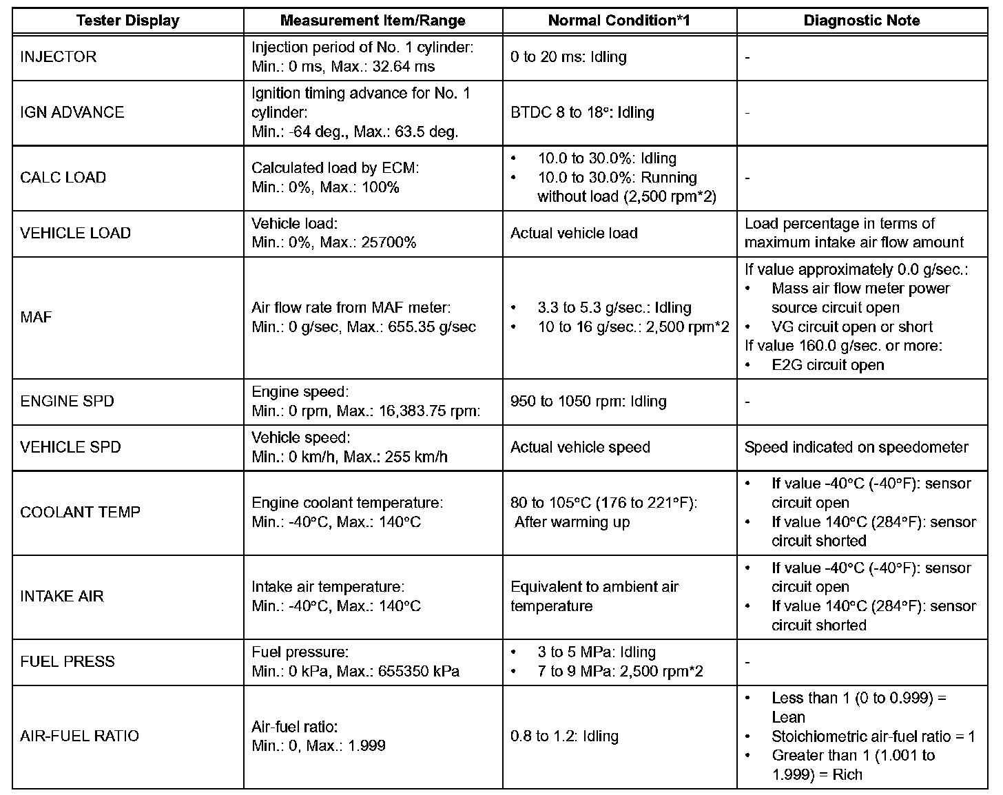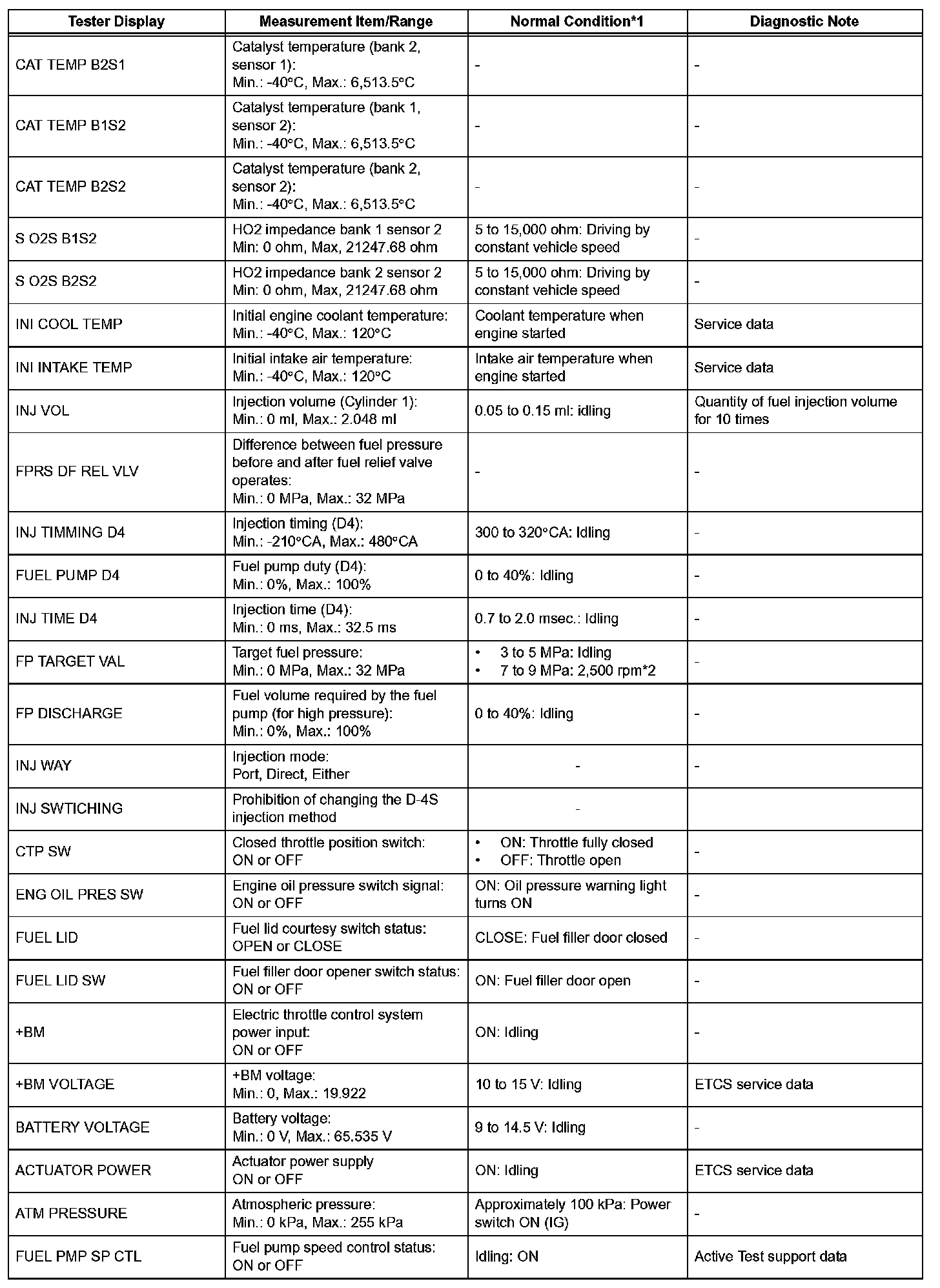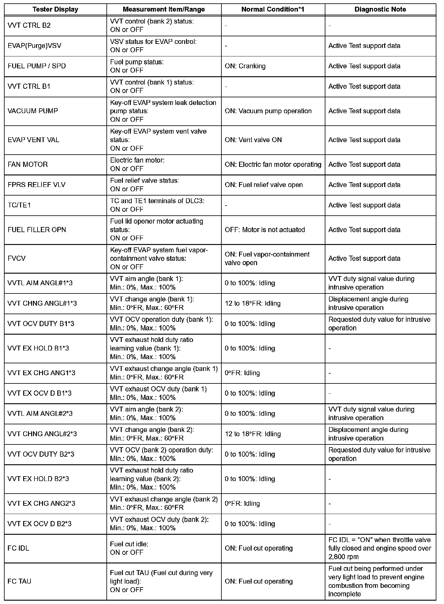- *3: DATA LIST values are only displayed when performing the following ACTIVE TESTs: VVT B1, VVT B2, VVT EX B1 and VVT EX B2. For other ACTIVE TESTs, the DATA LIST value will be 0.