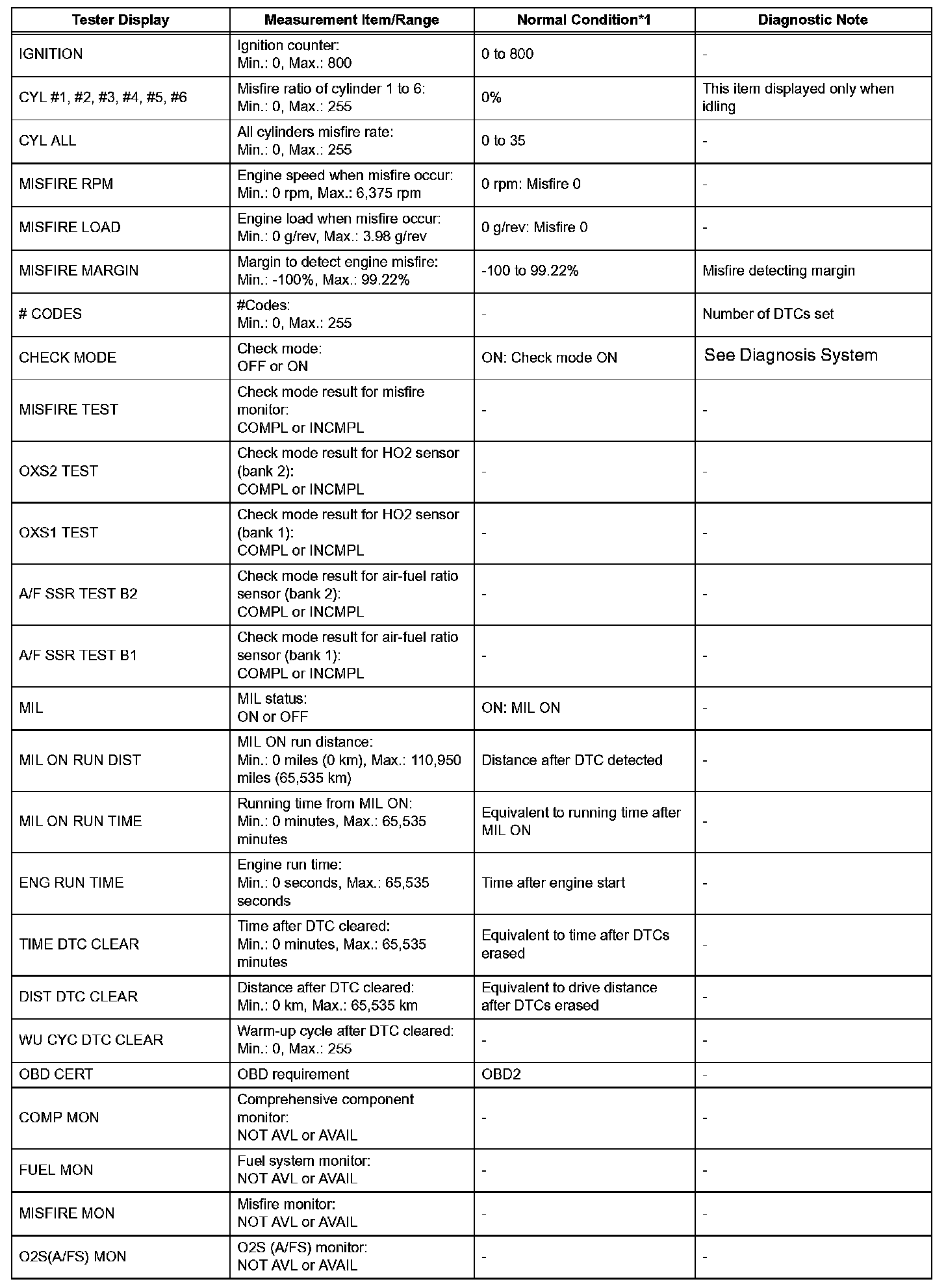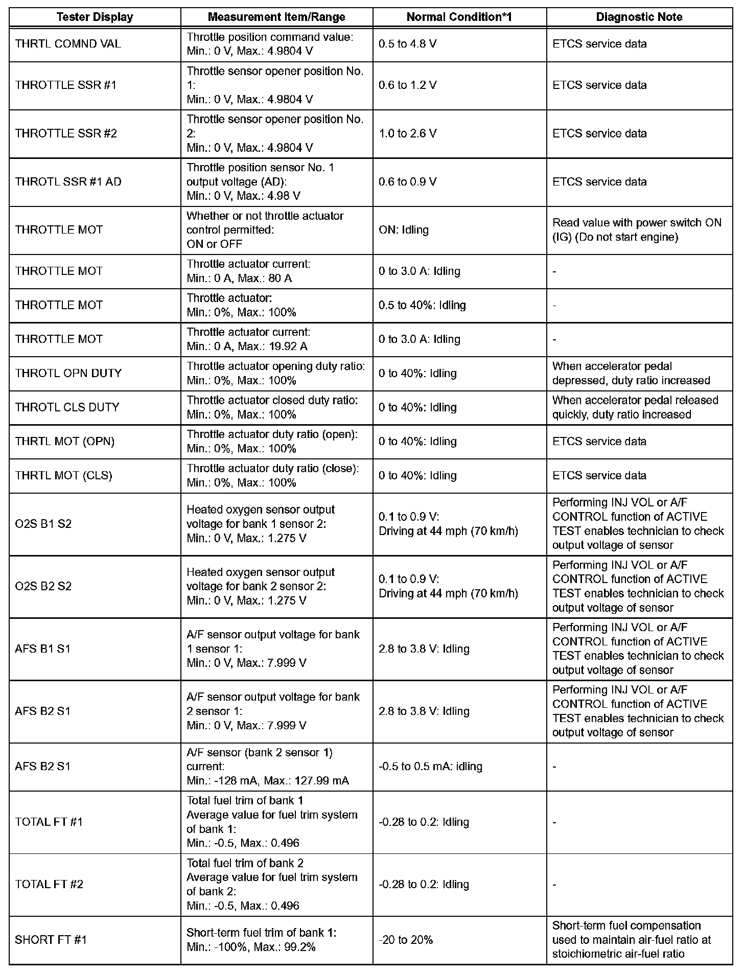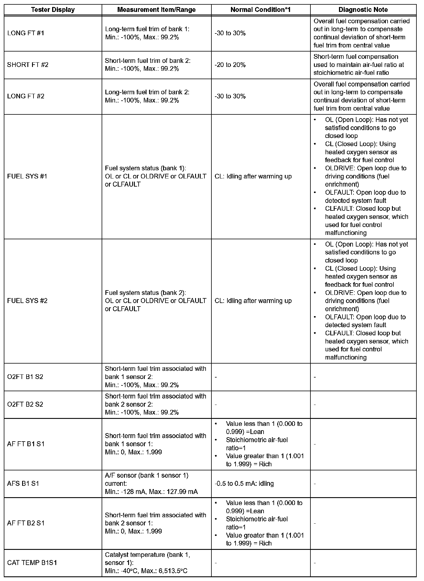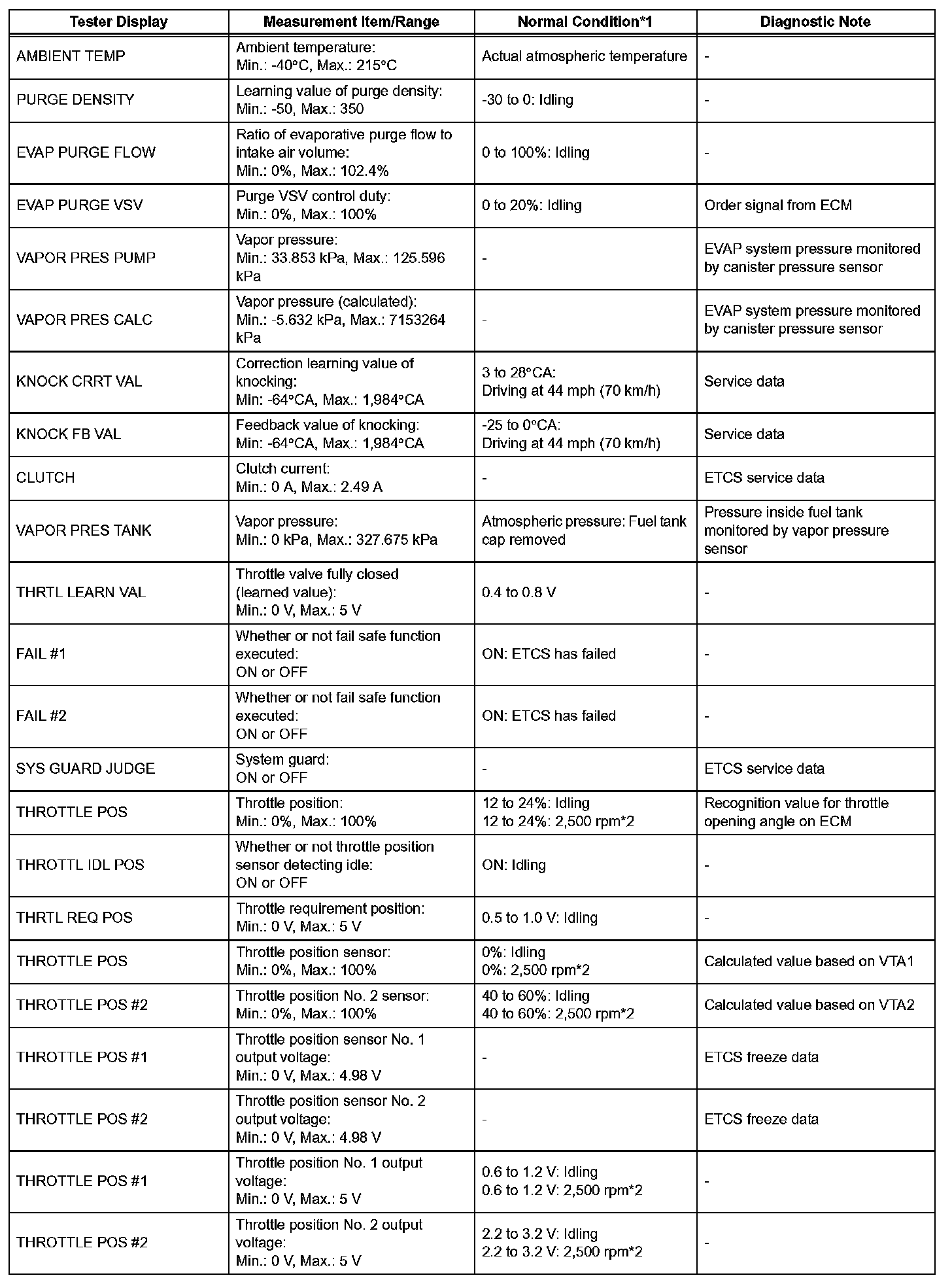 - *3: DATA LIST values are only displayed when performing the following ACTIVE TESTs: VVT B1, VVT B2, VVT EX B1 and VVT EX B2. For other ACTIVE TESTs, the DATA LIST value will be 0.