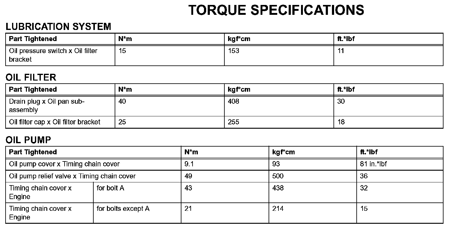 Lubrication - Torque Specifications: