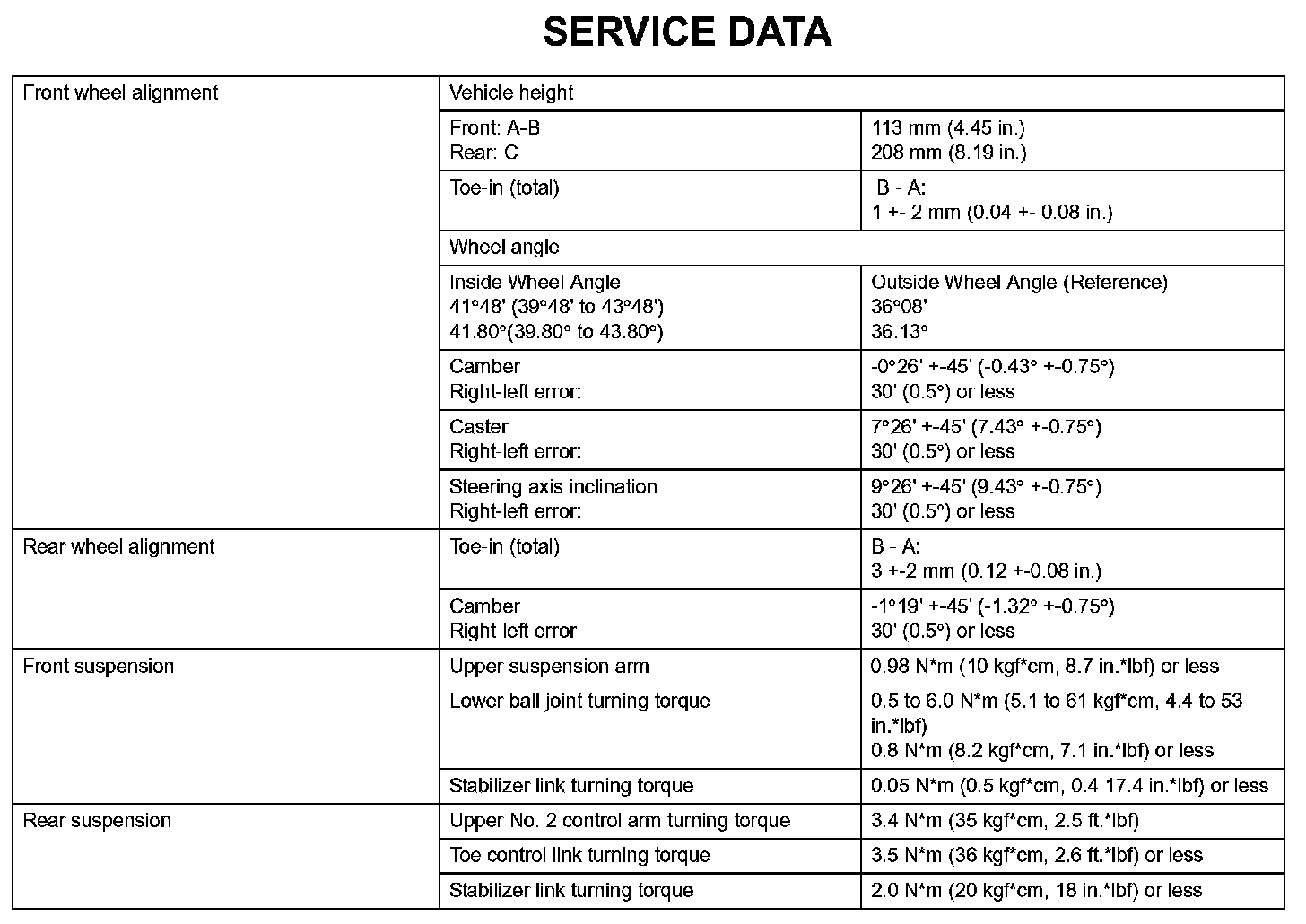 Suspension - Service Data: