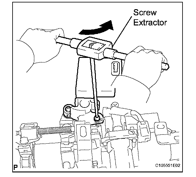 (c) Using a screw extractor, remove the 2 bolts and steering lock actuator from the steering column.