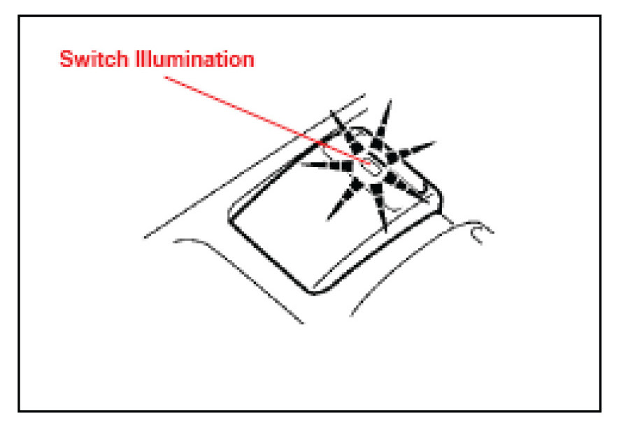 6. Check that the power window switch illumination for each door is constant.