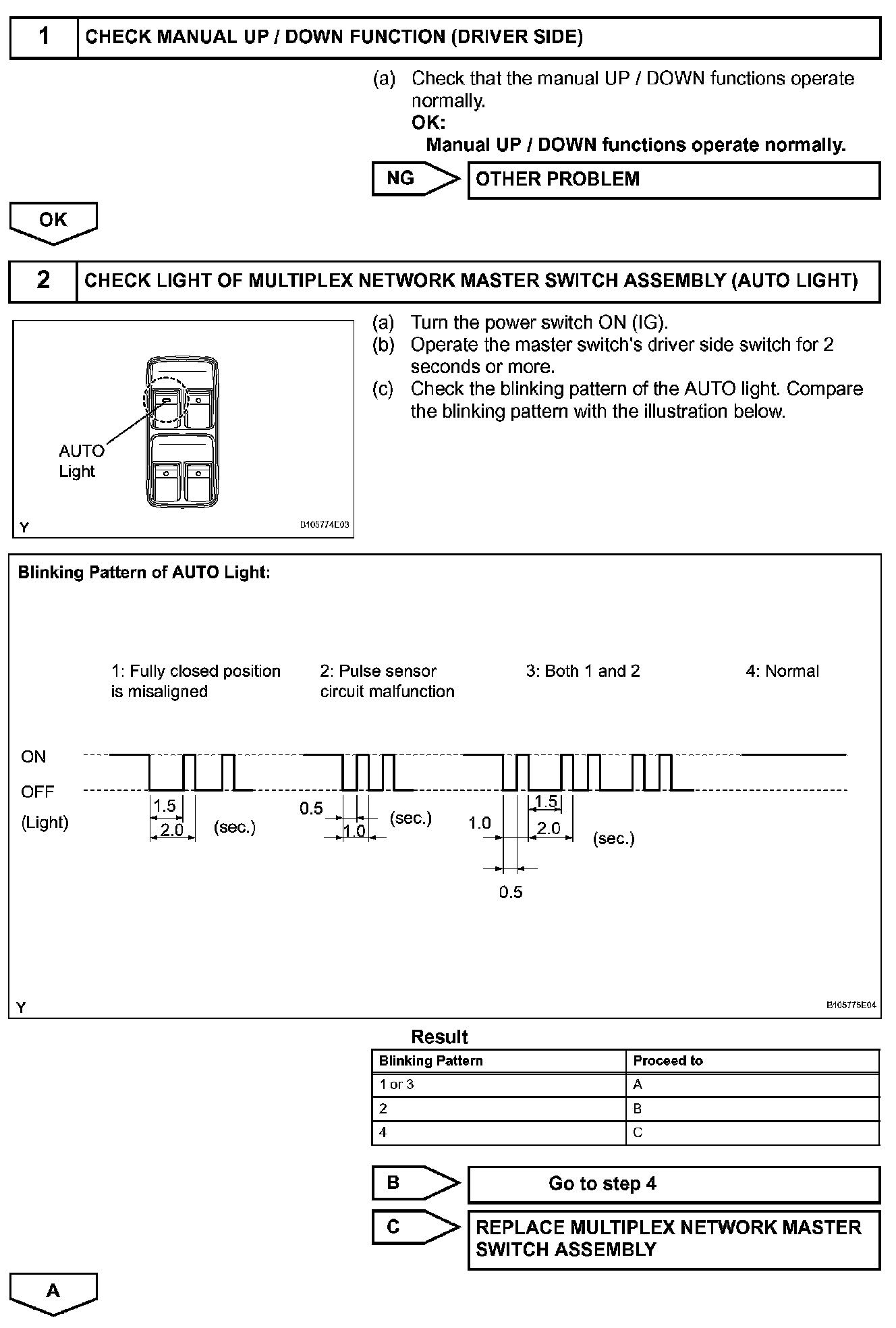 If the AUTO UP / DOWN function does not operate, the cause may be one or more of the following: