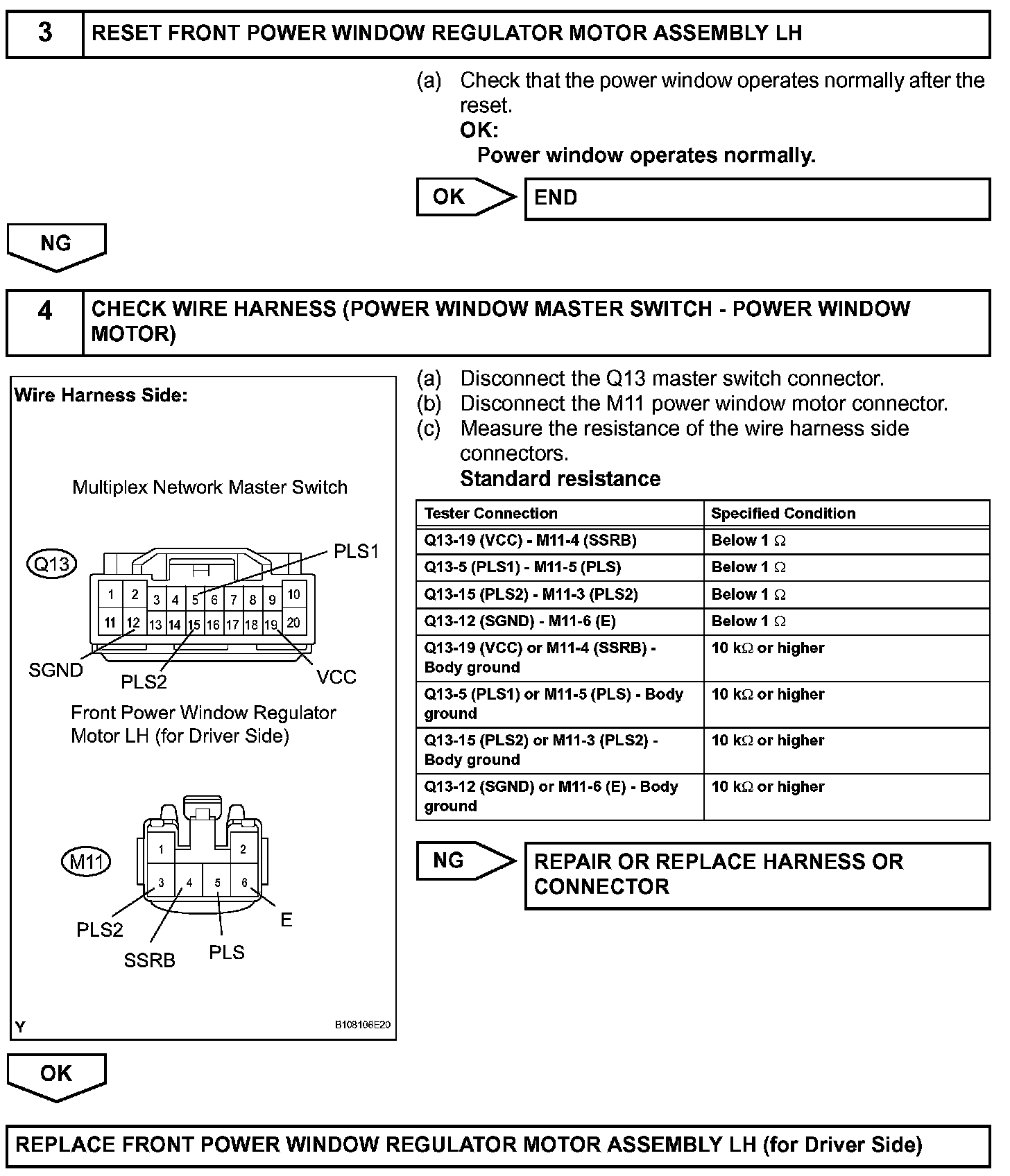 - The recorded power window fully closed position, which is stored in the multiplex network master switch, was erased as a result of: 1) a fuse or relay related to the driver side power window being replaced; or 2) the battery cable and the master switch's connector being disconnected.