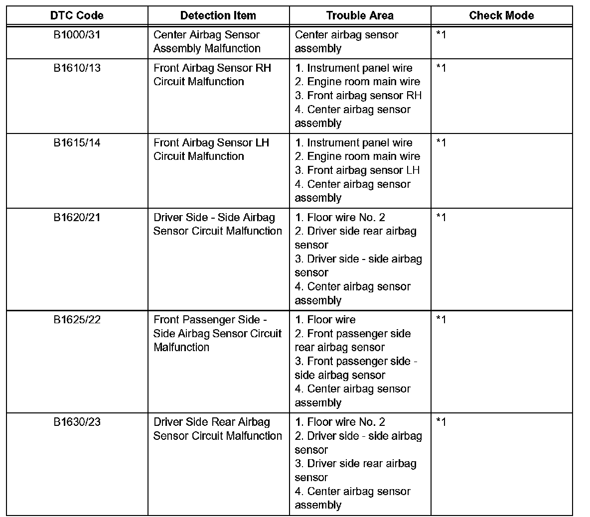 *1: DTC is not corresponding to the check mode.