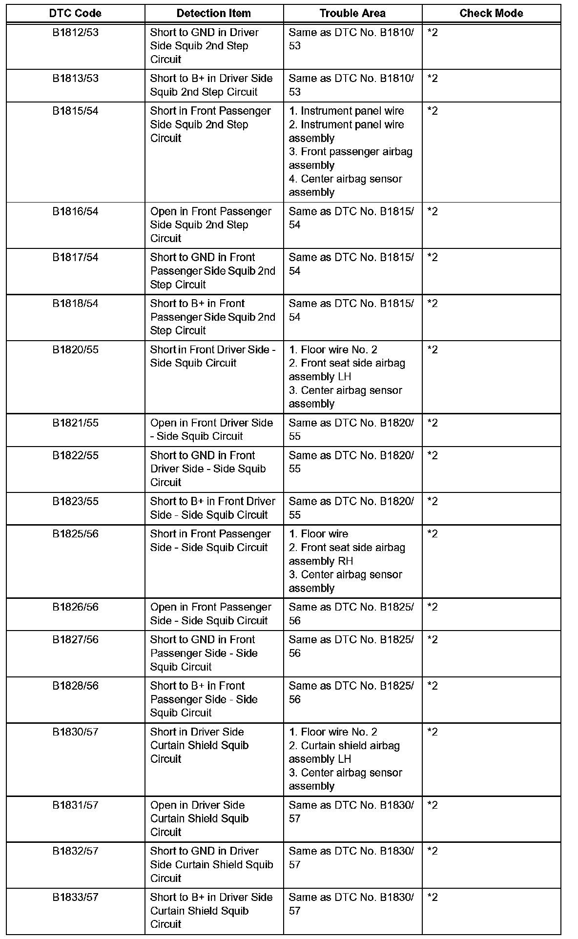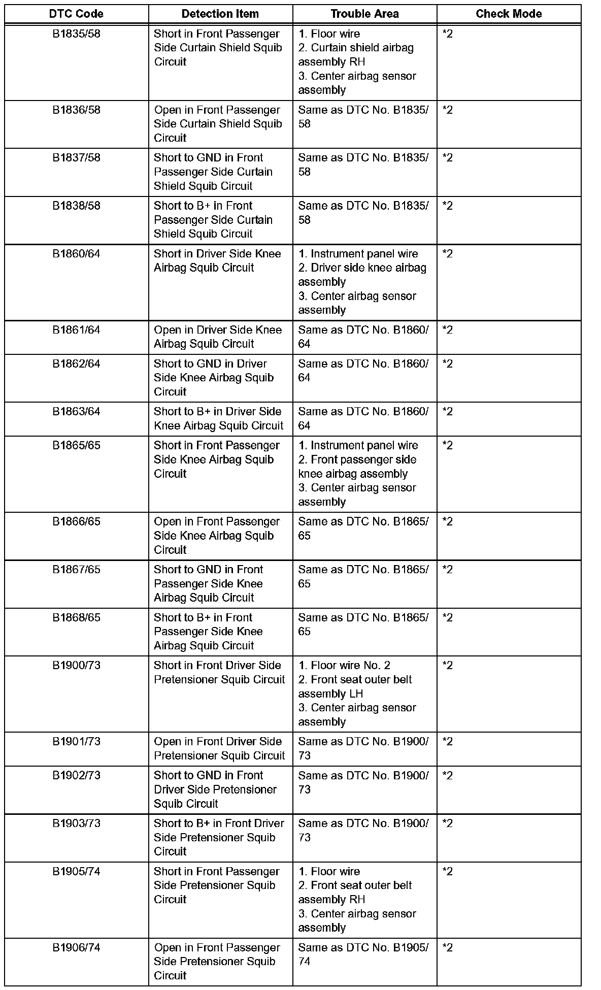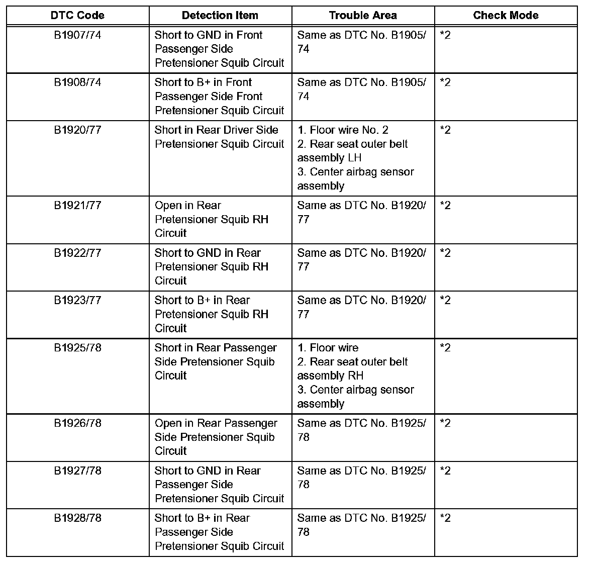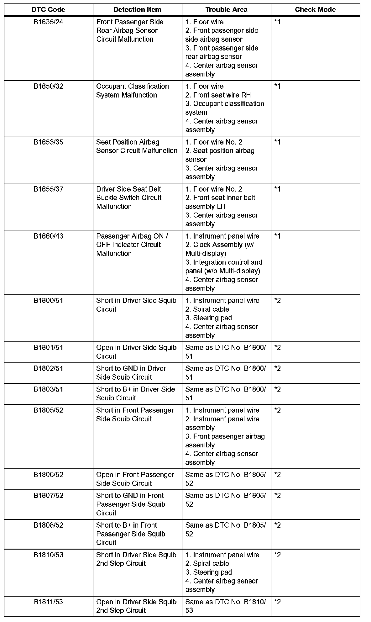 *2: DTC is corresponding to the check mode.