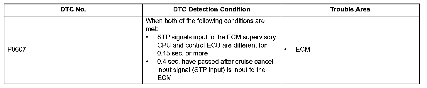 HINT: The ECM receives signals from each sensor to control all functions of the cruise control system. When a trouble code is detected, the fail-safe function remains on until the engine switch is turned off.