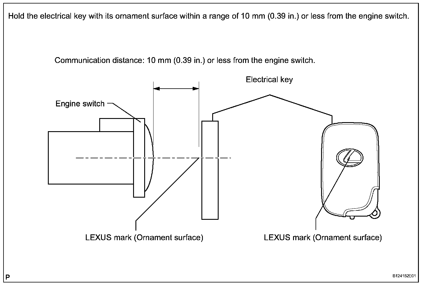 The vehicle with the smart access system with push-button start system does not have a key slot. Therefore, hold the key close to the engine switch to register the key, as shown in the illustration.