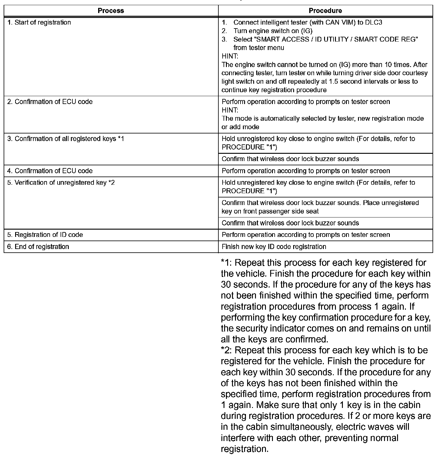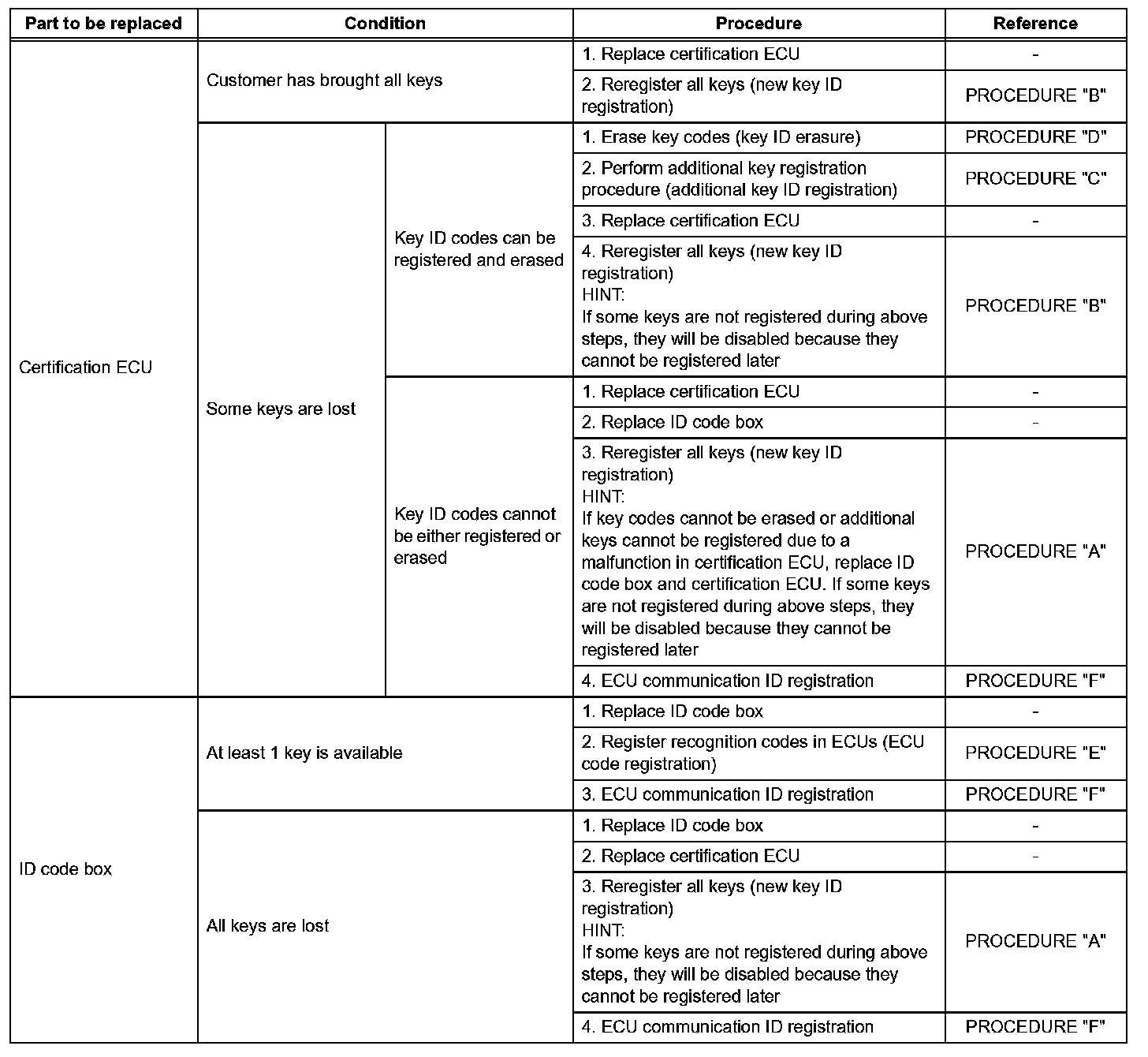- Code registration is needed when the certification ECU, ID code box, steering lock ECU or key is replaced with a new one.