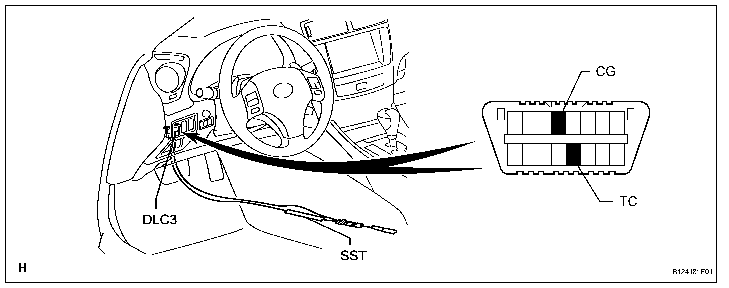 1. Using SST, connect terminals TC and CG of the DLC3.
