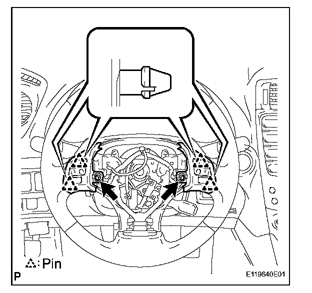 c. Disengage the 4 pins and remove the steering pad switch assembly.