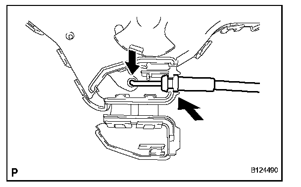 e. Remove the front door lock remote control cable assembly.