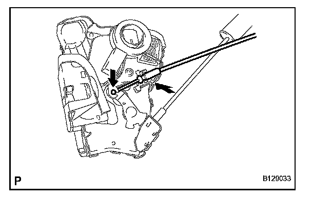 f. Insert the front door lock open rod to the front door lock assembly, and set it to the front door outside handle frame.