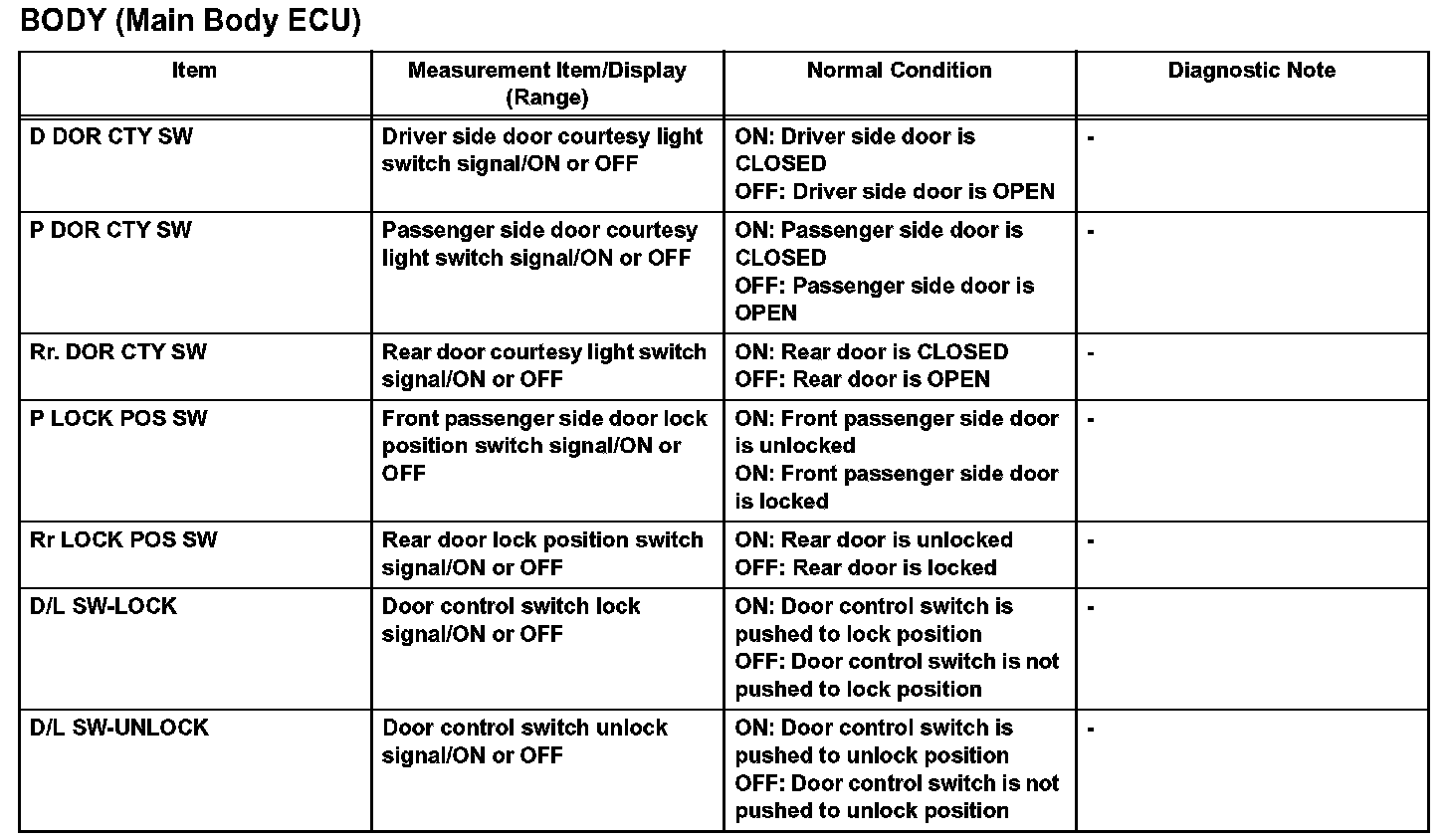READ DATA LISTHINT: Using the intelligent tester's DATA LIST allows switch, sensor, actuator, and other item values to be read without removing any parts. Reading the DATA LIST early in troubleshooting is one way to save time.
