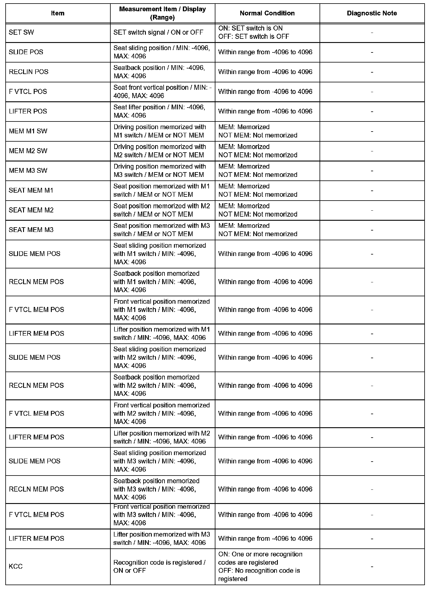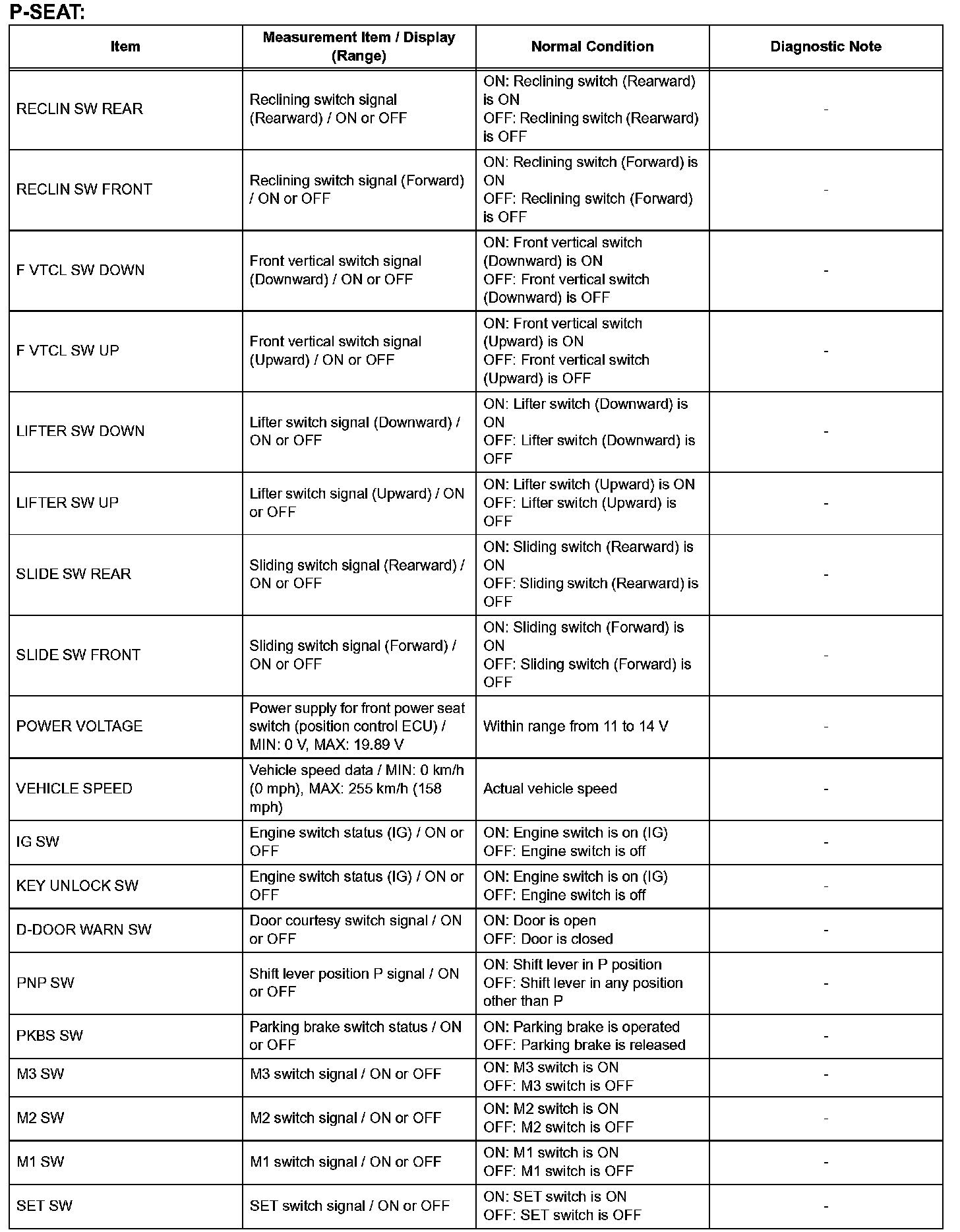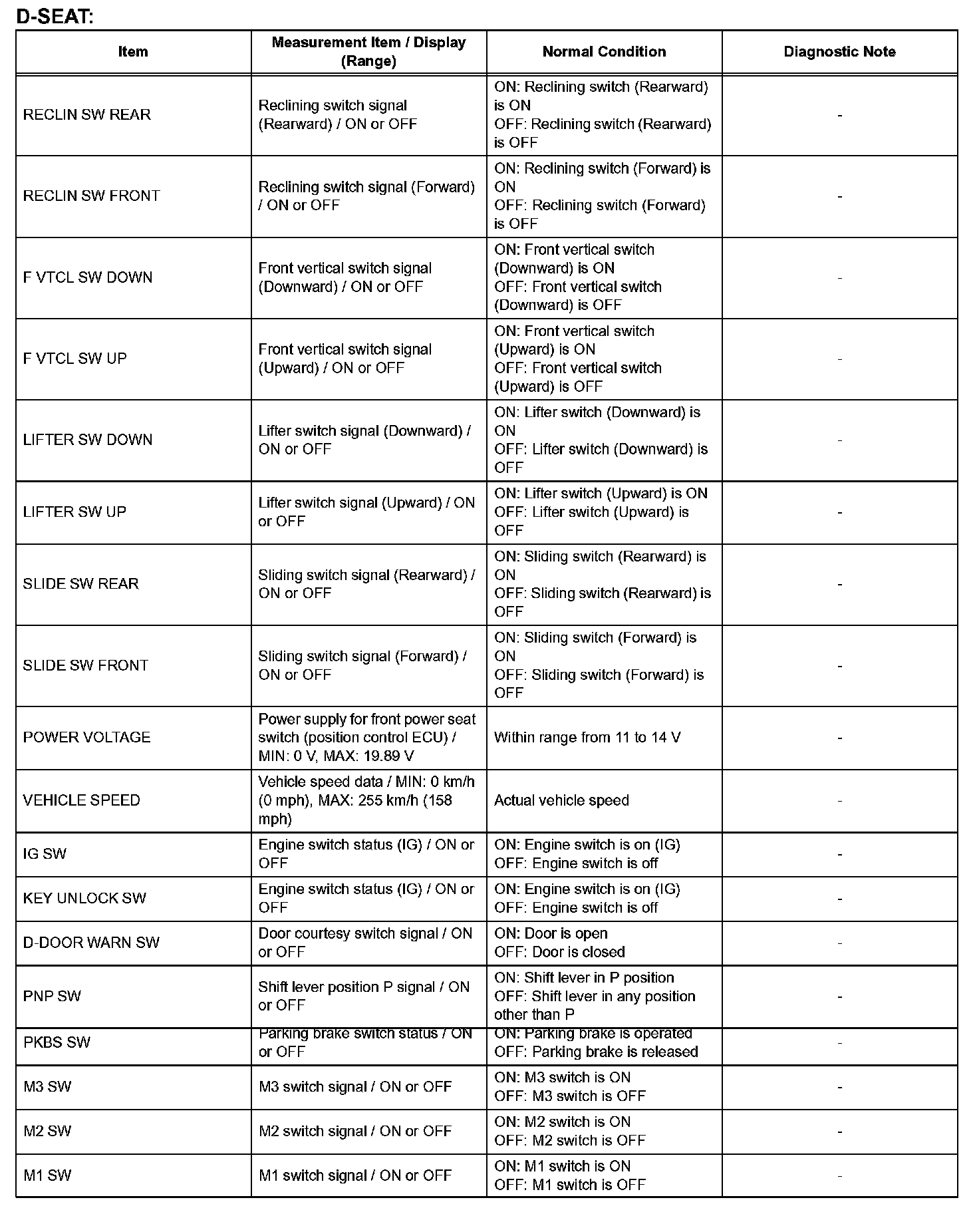 HINT: Using the intelligent tester's DATA LIST allows switch, sensor, actuator and other item values to be read without removing any parts. Reading the DATA LIST early in troubleshooting is one way to save time.