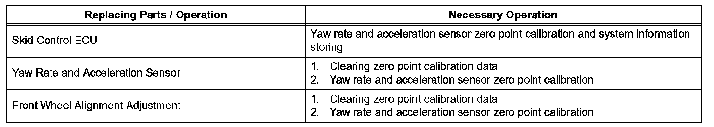 NOTE: If the vehicle is driven after the zero point of the yaw rate and acceleration sensor and system information is cleared, DTCs will be stored.