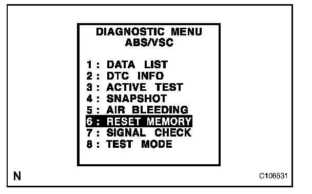 5. Operate the intelligent tester to erase the codes (select "RESET MEMORY").