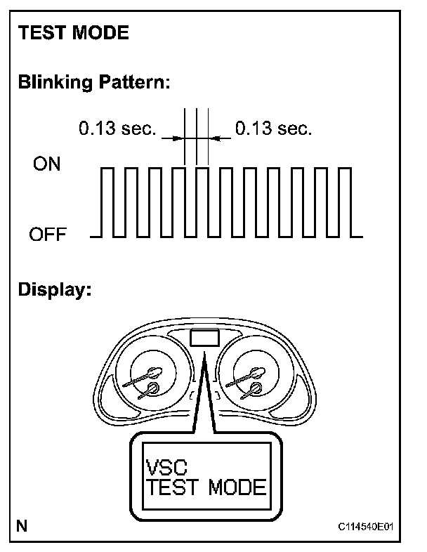 6. Check that the master caution indicator light blinks and "VSC TEST MODE" is displayed on the multi-information display (Test Mode).