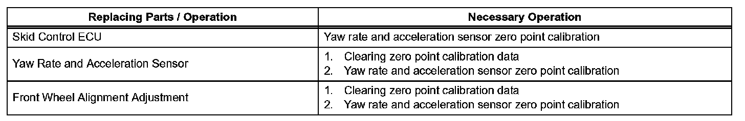 - After replacing the VSC relevant components or performing "Front wheel alignment adjustment", clear and read the sensor calibration data.