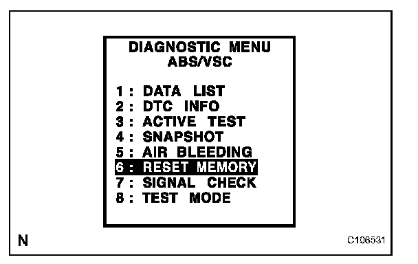 5. Operate the intelligent tester to erase the codes (select "RESET MEMORY").