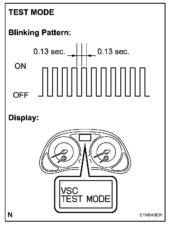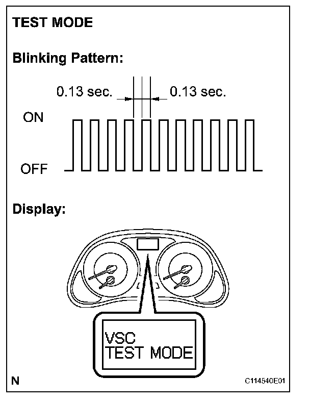 6. Check that the master caution indicator light blinks and "VSC TEST MODE" is displayed on the multi-information display (Test Mode).