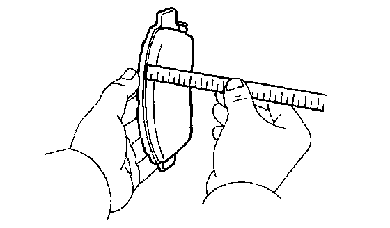 If the pad lining thickness is less than the minimum, replace the brake pads.