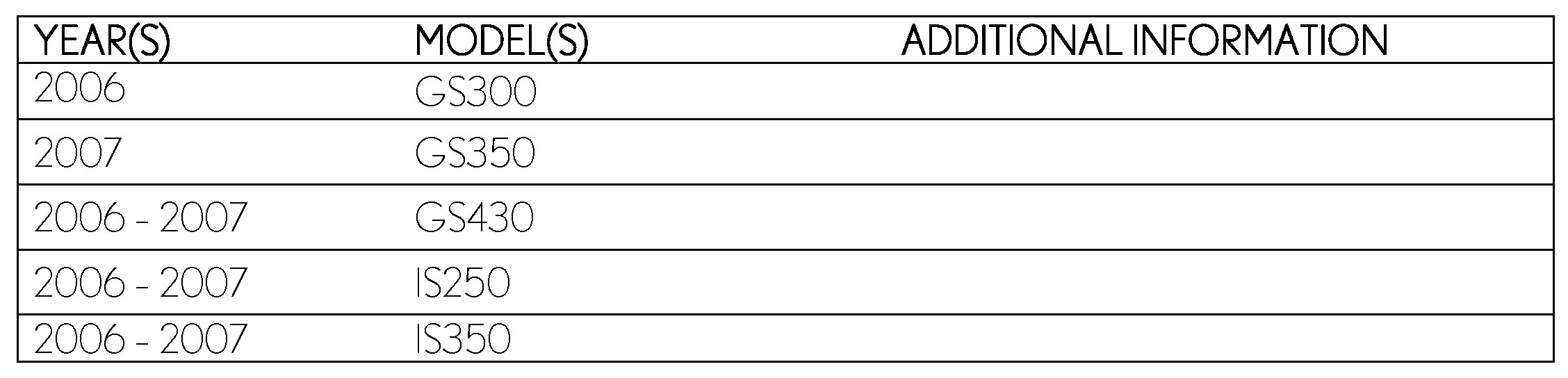 '06 GS 300, '07 GS 350, '06- '07 GS 430 & IS 250/350