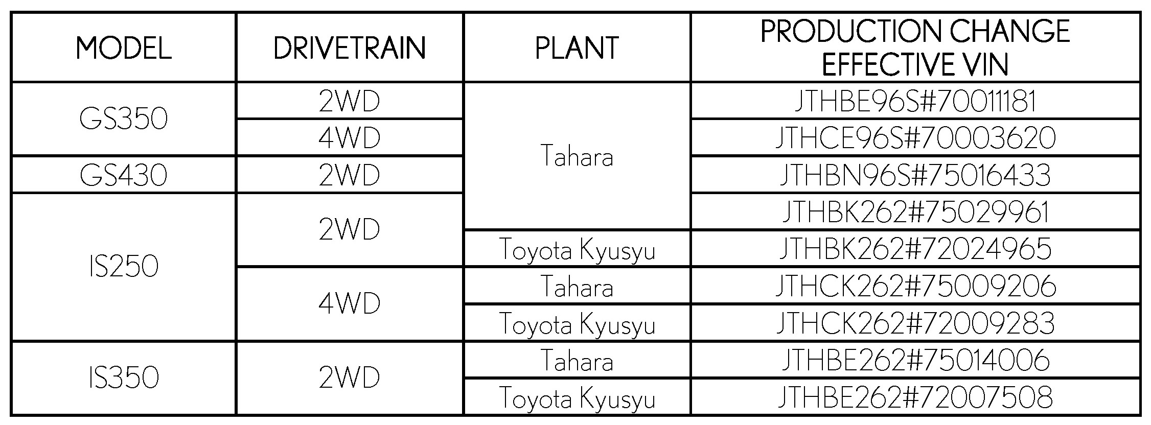 - Model: GS 300/350/430, IS 250/350