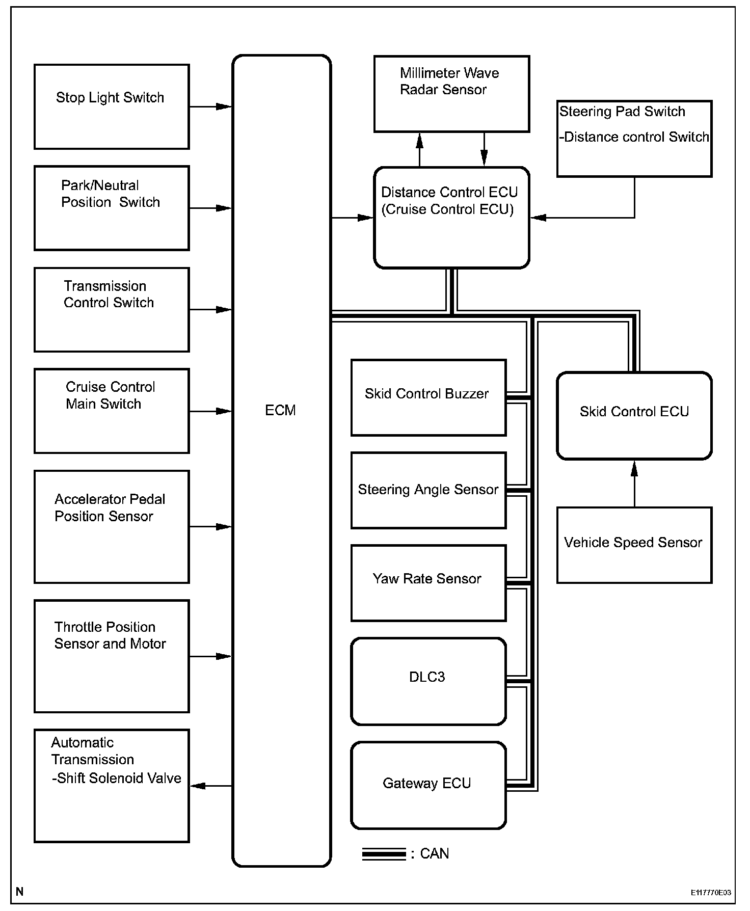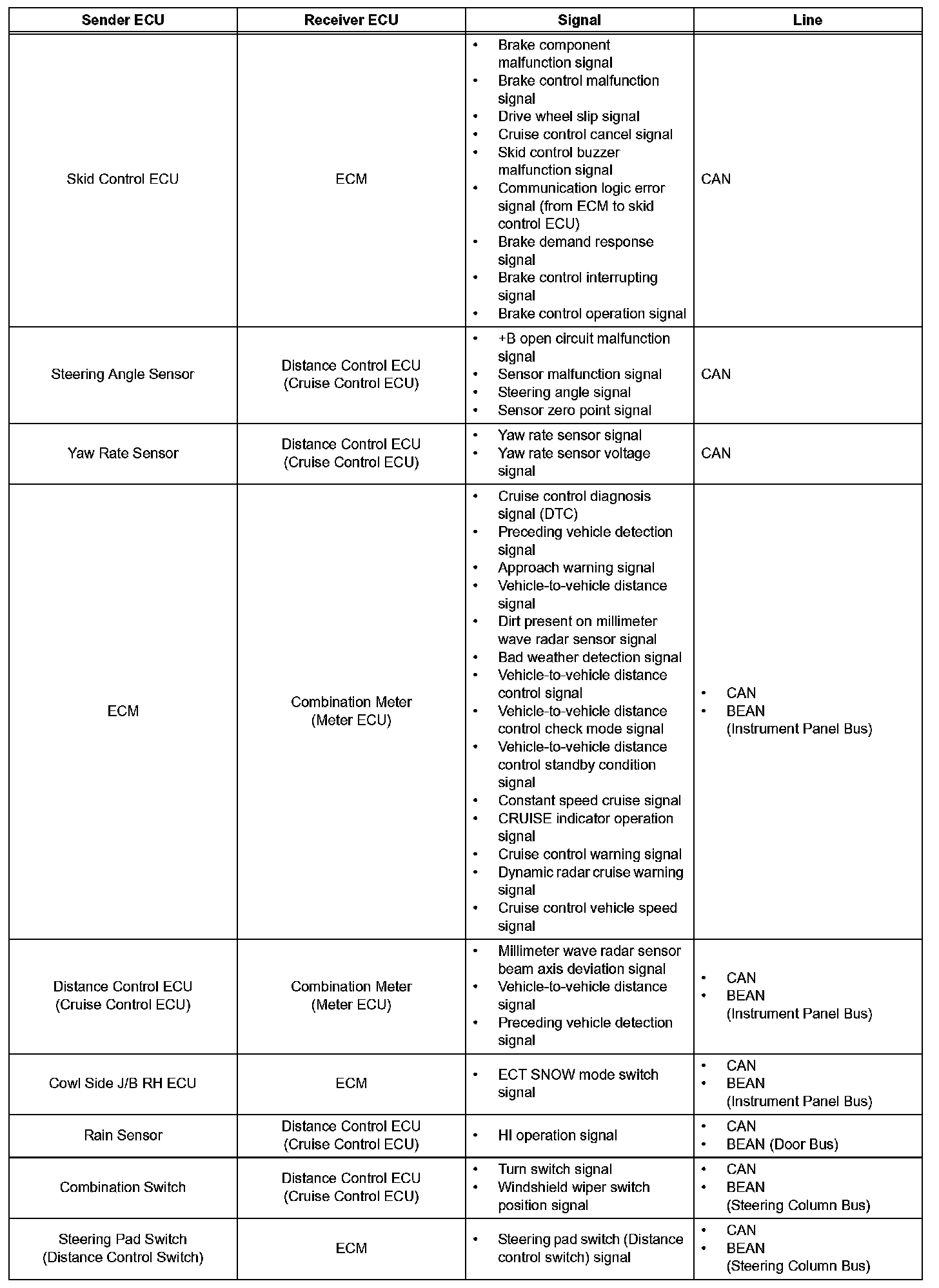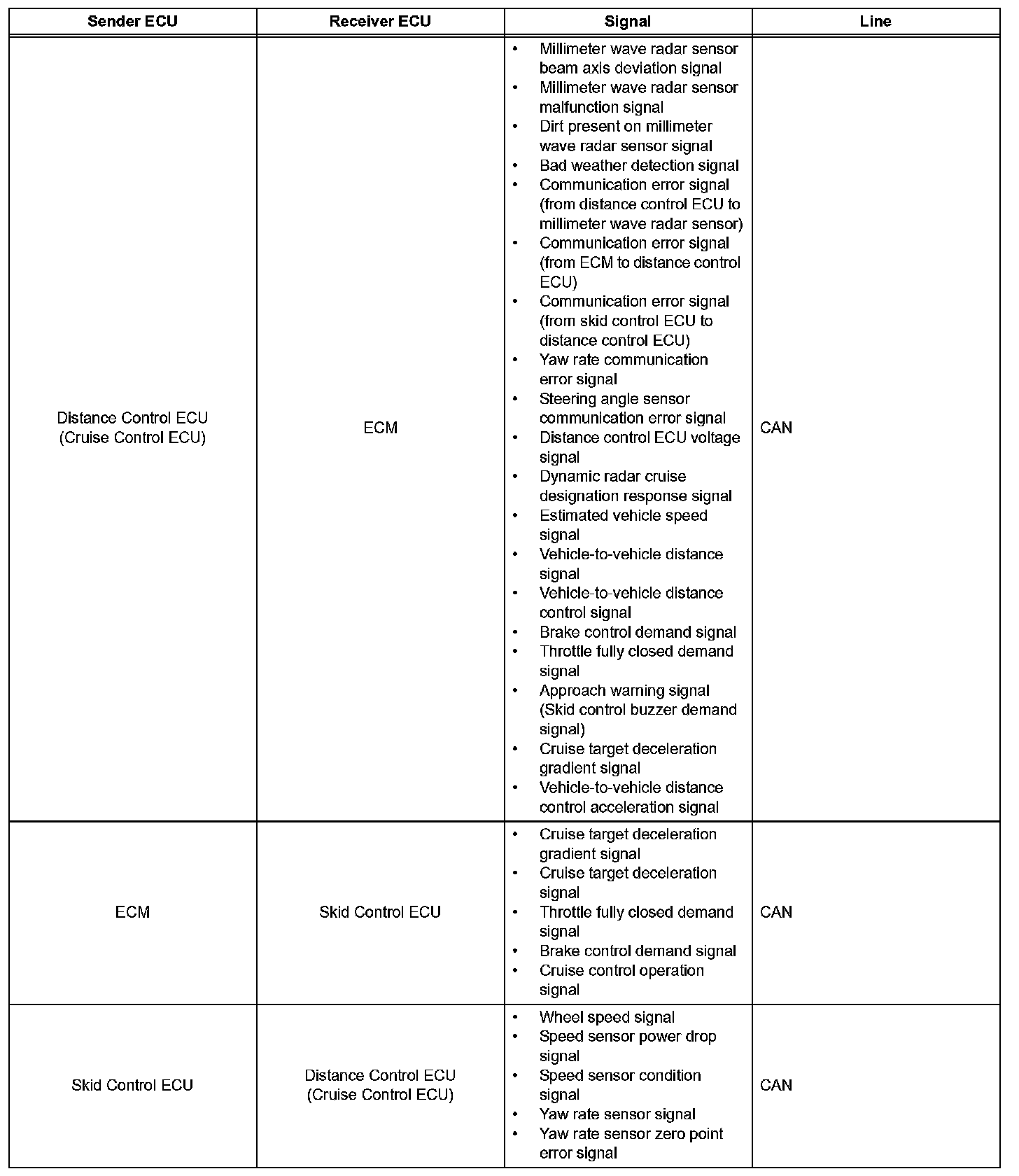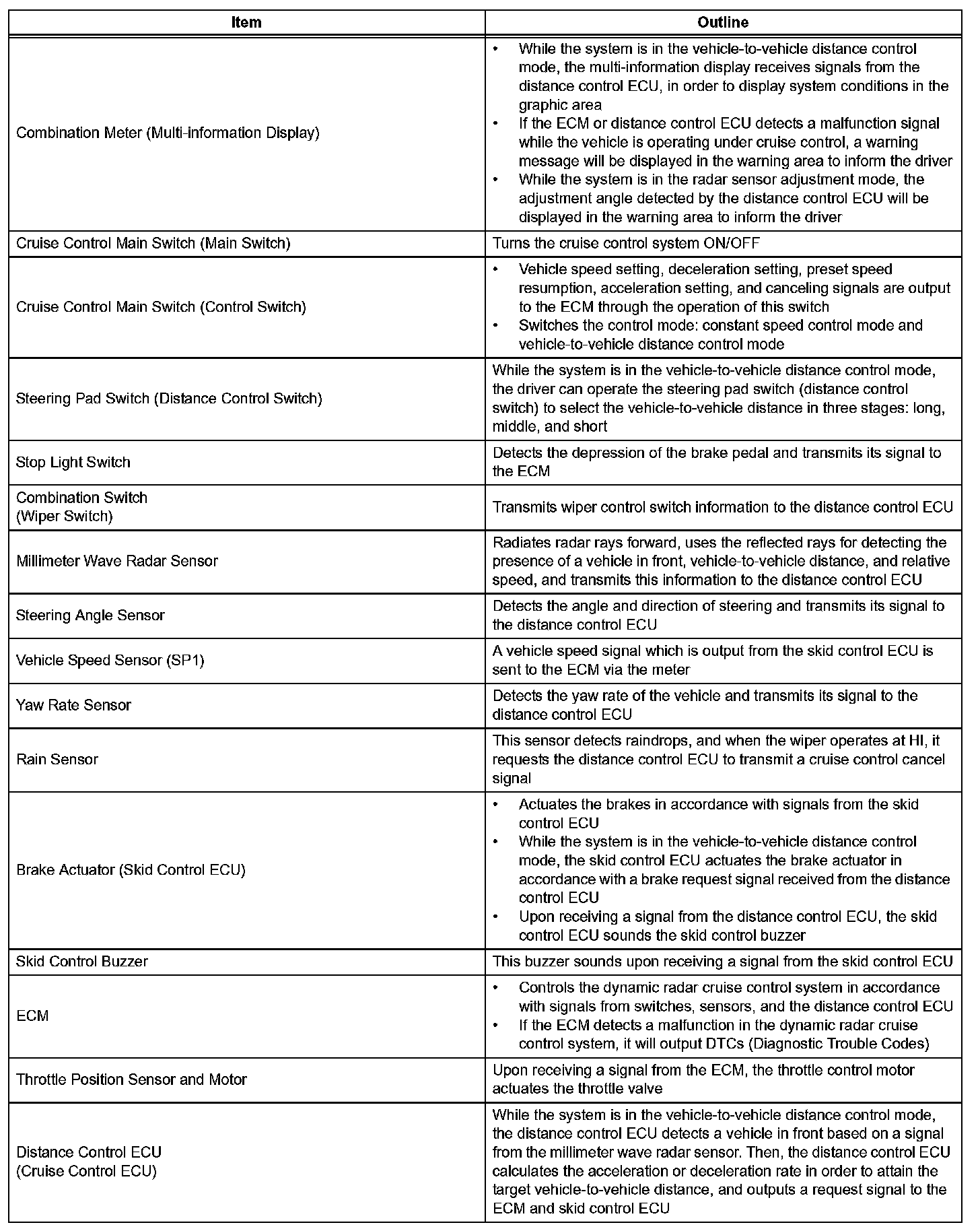 d. The millimeter wave radar sensor and the distance control ECU (cruise control ECU) control the system while the vehicle-to-vehicle distance control mode is in operation, and send signals to each actuator and ECU.